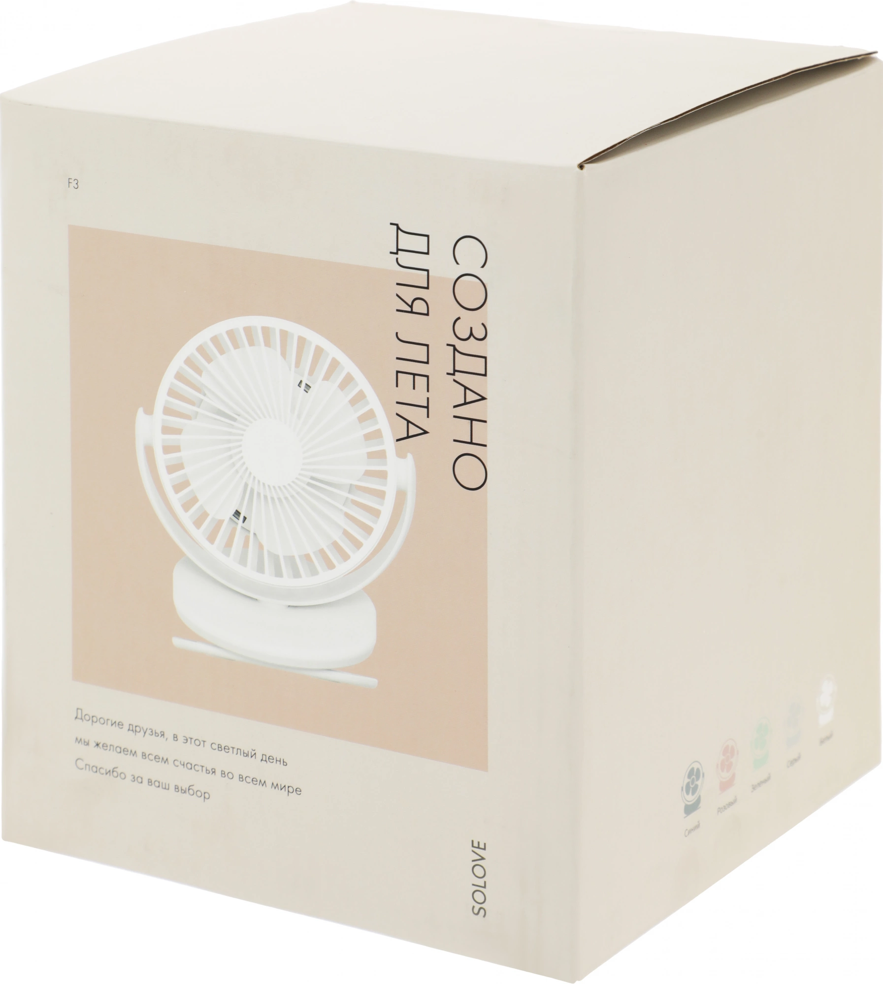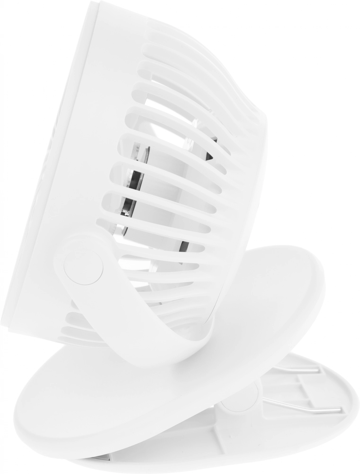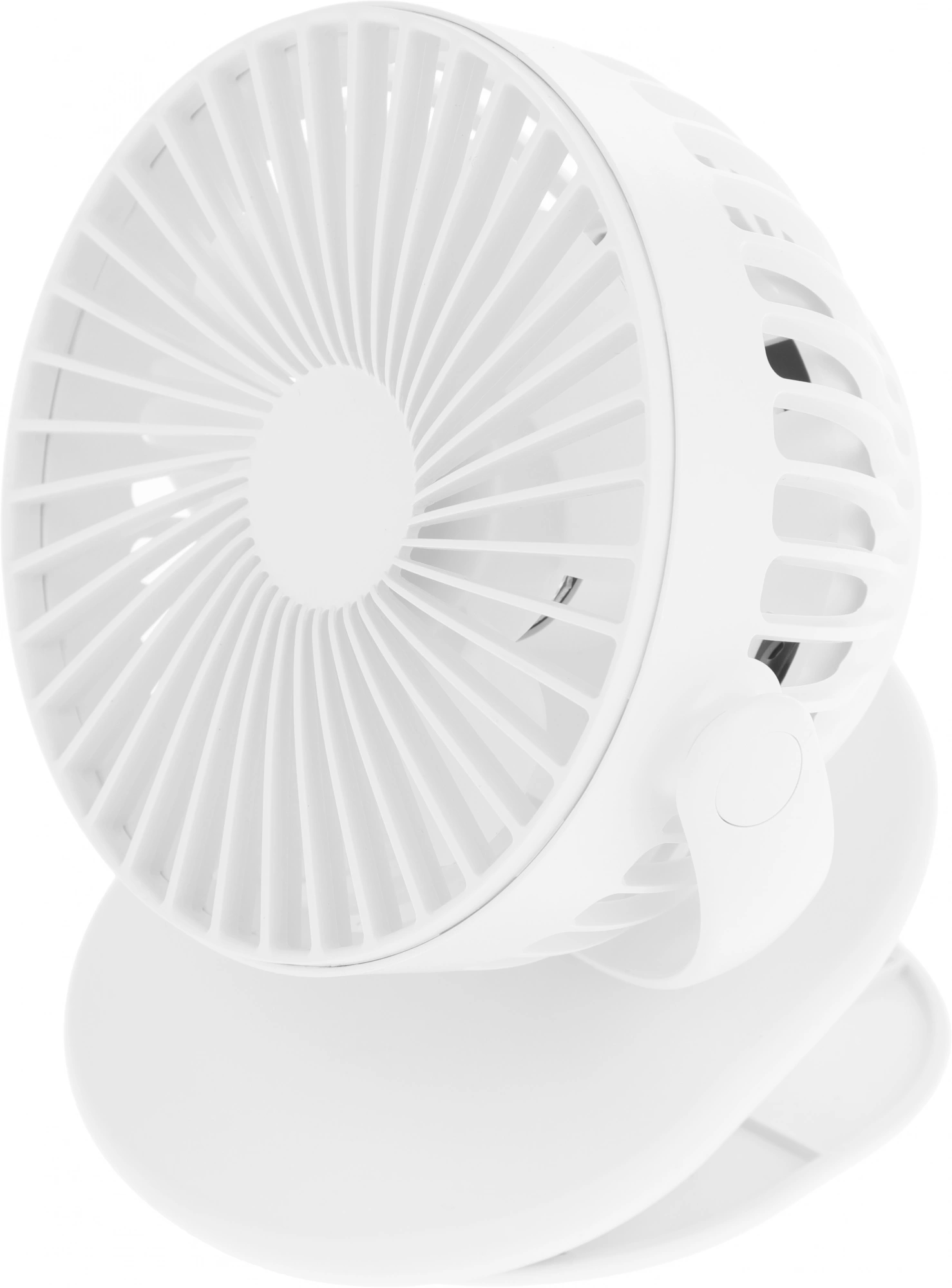 Вращение корпуса 360. Три скорости, зарядка от USB. Основание вентилятора представляет собой крепкий зажим с противоскользящим покрытием. Встроенный аккумулятор емкостью 2000 мА поддерживает работу вентилятора в течение 2-6 часов. Встроенный порт USB Type-C. Погружать корпус в воду запрещено.