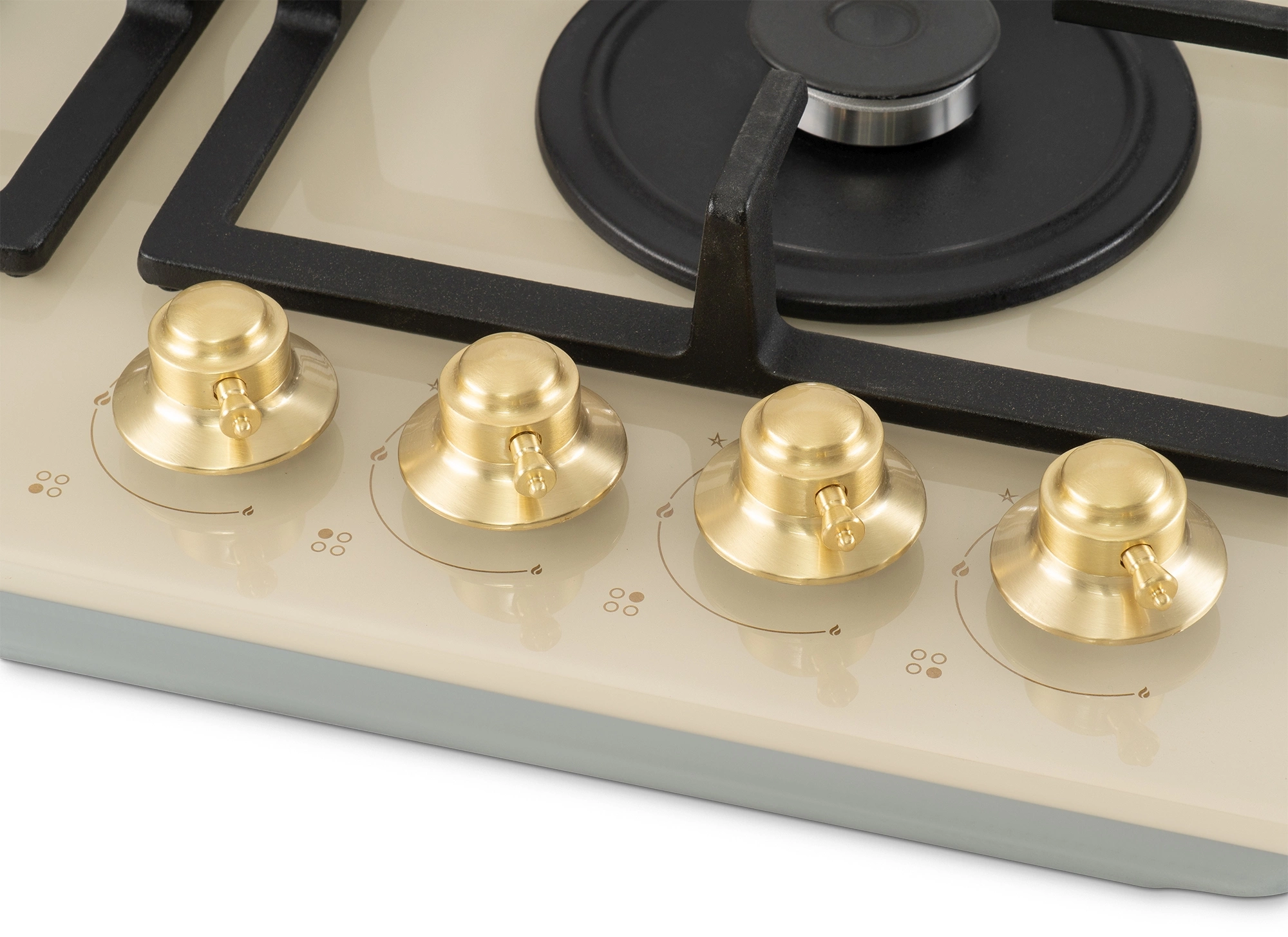 Четыре конфорки с газ-контролем: Прочные и надежные одноконтурные газовые конфорки помогут вам готовить на разных уровнях мощности, обеспечивая равномерное прогревание продуктов.