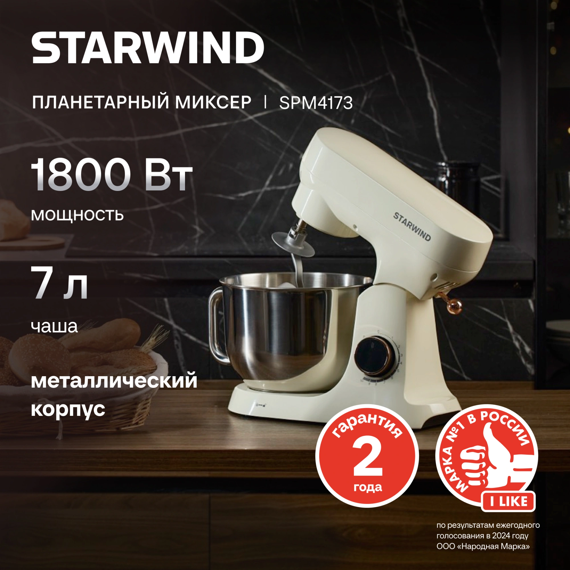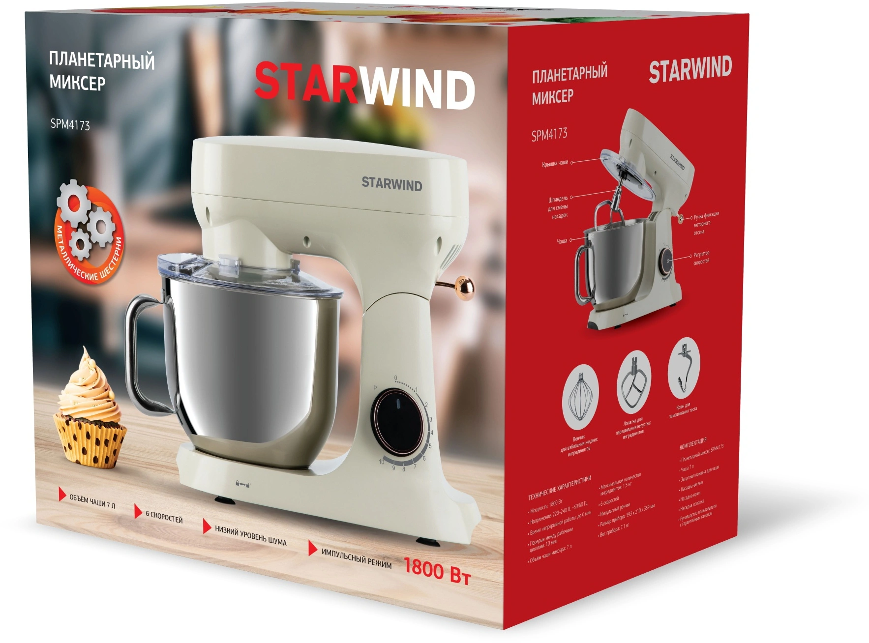 Планетарный миксер Starwind SPM4173 представитель 4 серии и обладает целым рядом преимуществ, включая эффективность, экономичный расход электроэнергии, надежность и простоту в обслуживании.