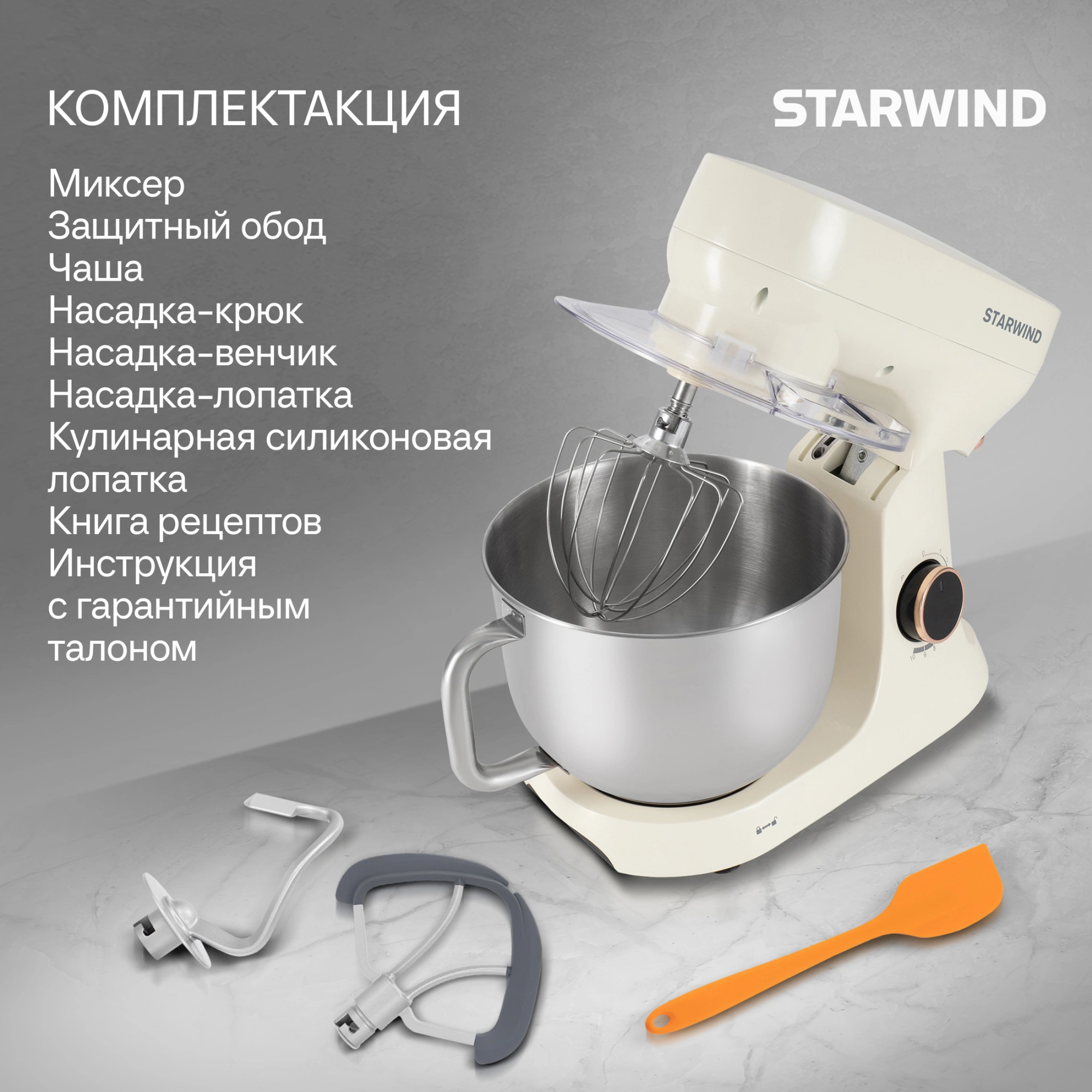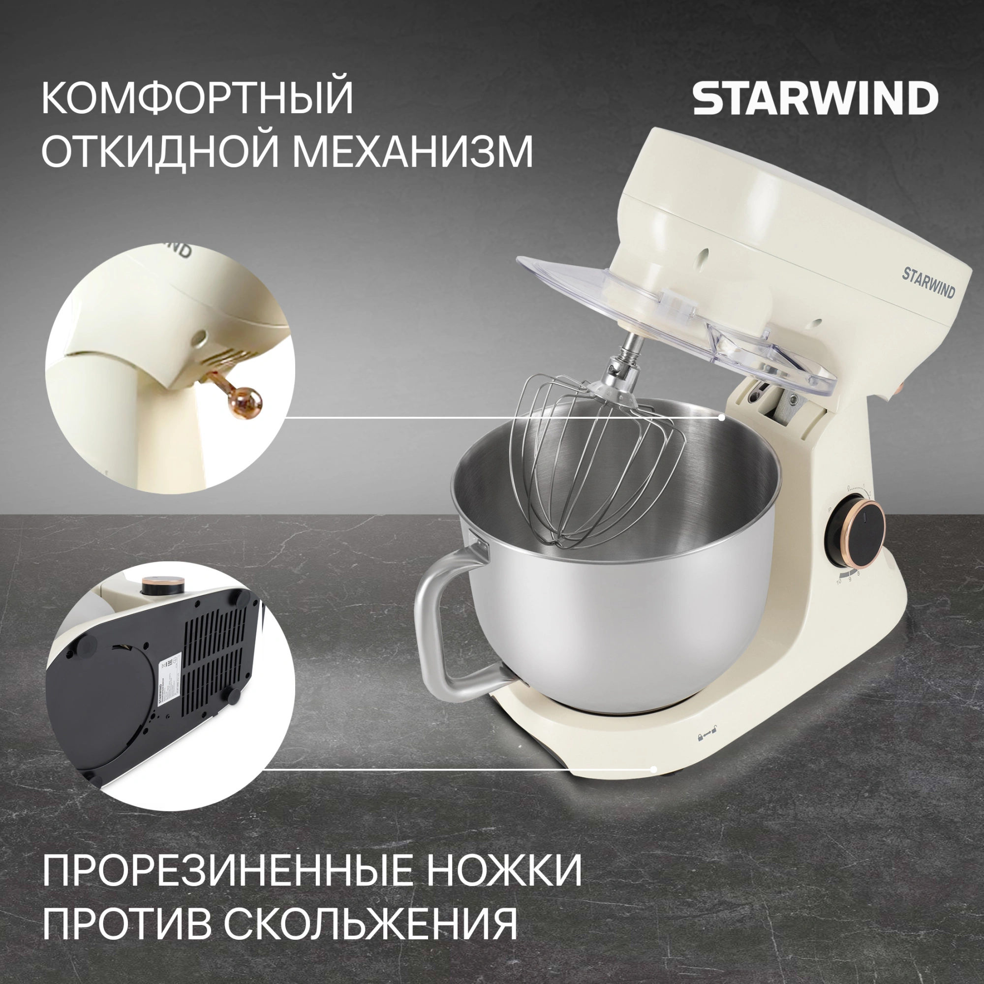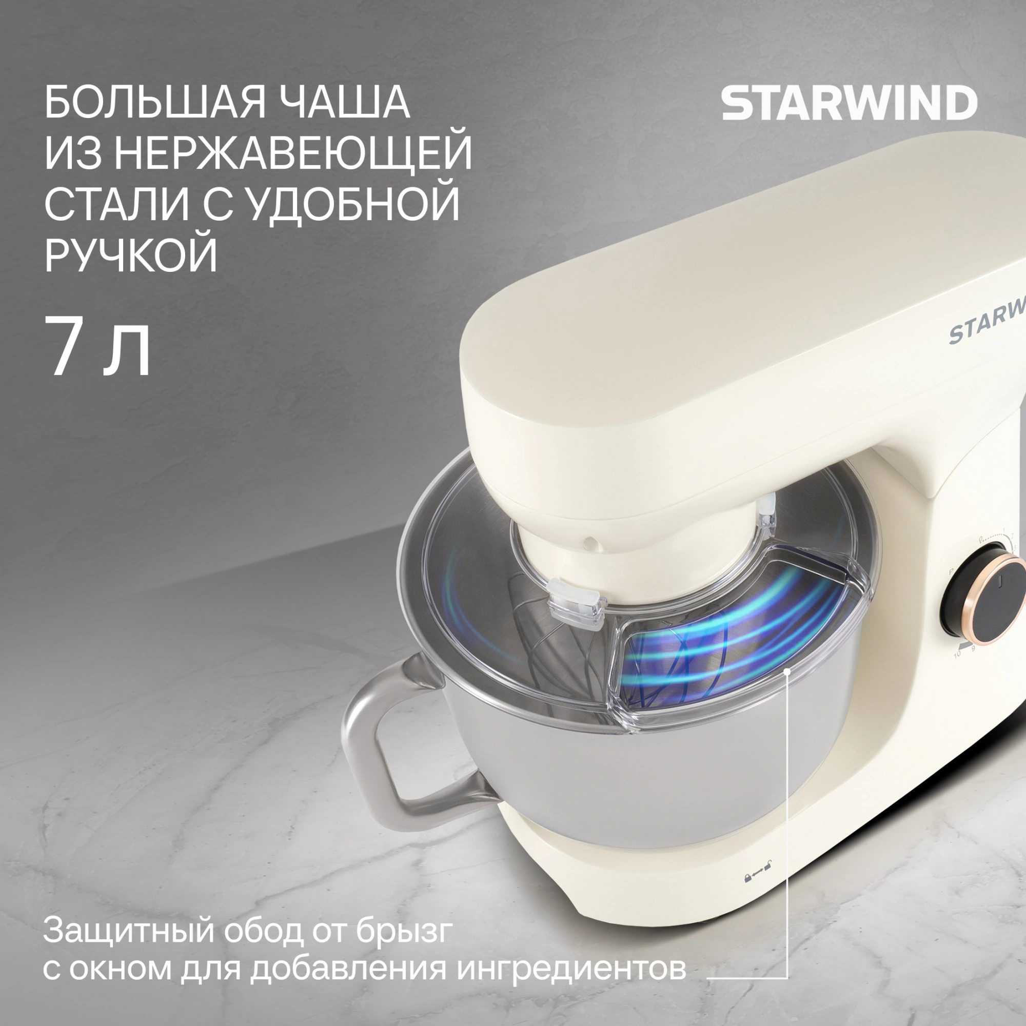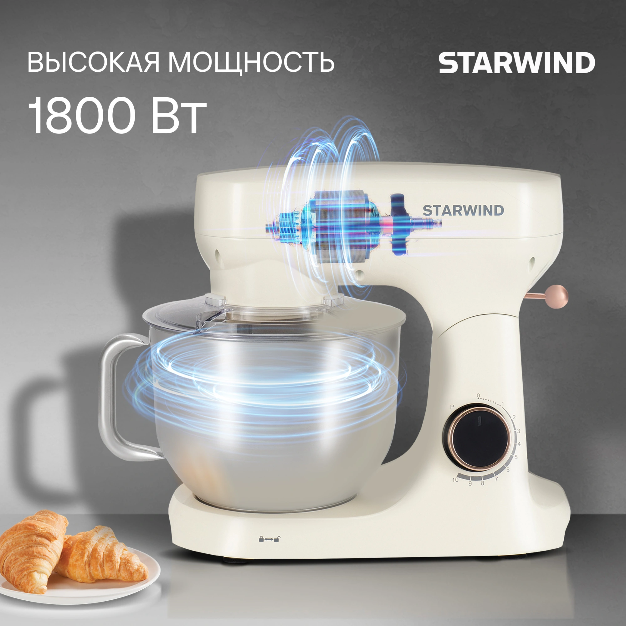 Белый цвет и элегантный дизайн делают планетарный миксер Starwind SPM4173 не только незаменимым помощником на кухне, но и эстетичным аксессуаром, гармонично вписывающимся в интерьер.