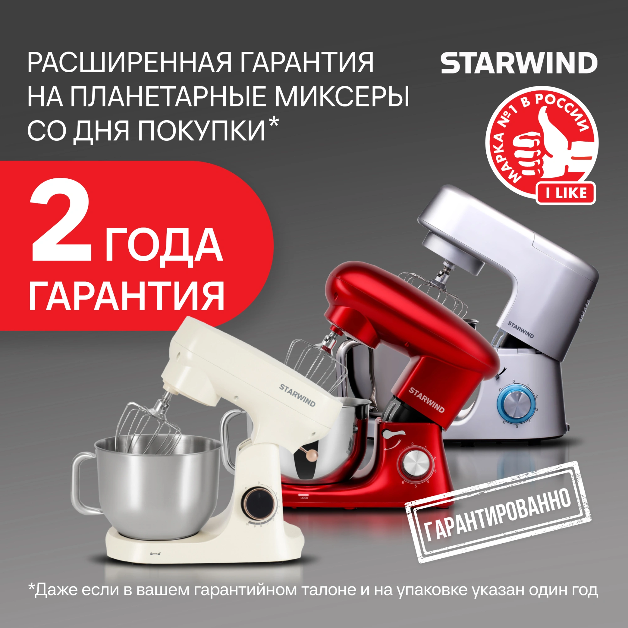 Starwind - лауреат ежегодной национальной премии МАРКА №1 в России 2024 в категории Планетарные миксеры. Этот выбор подтверждает народное доверие, а также качество и надежность продукции Starwind, созданной для вашего удобства и удовольствия в готовке.