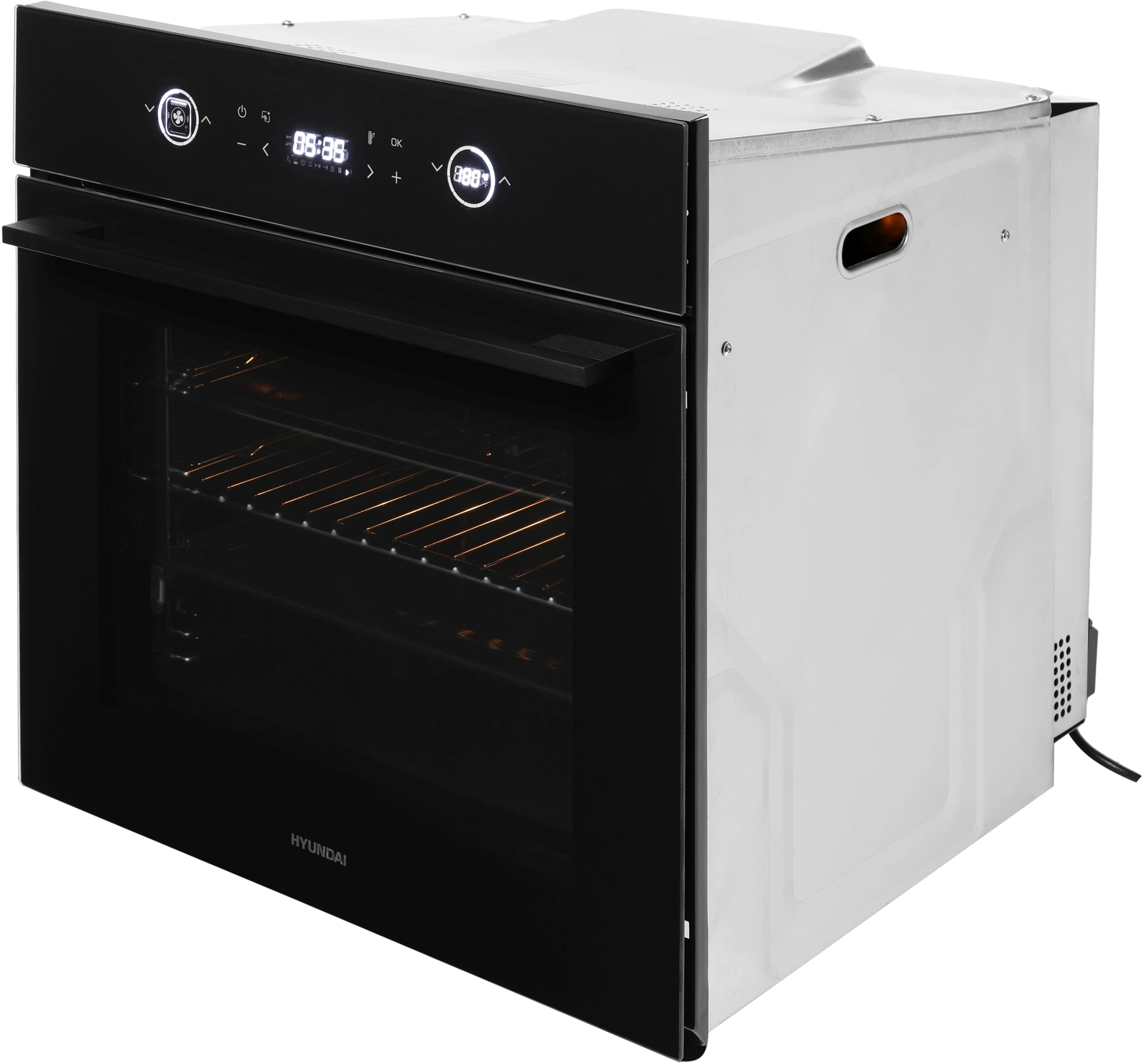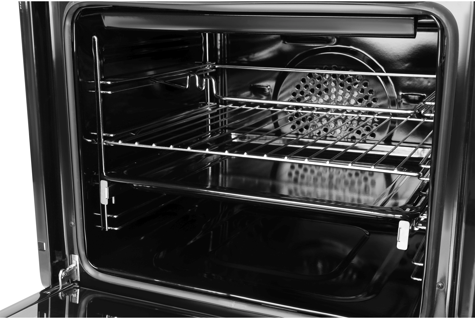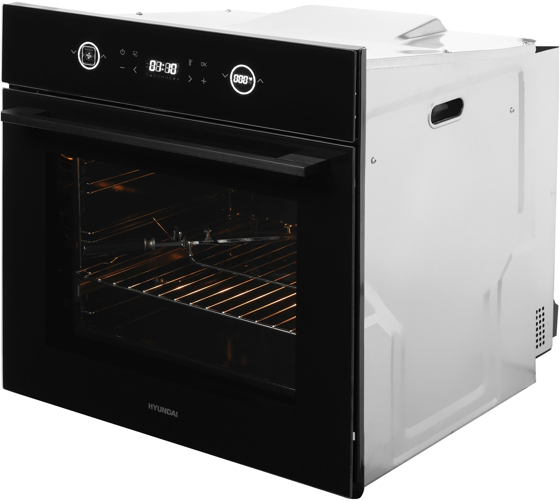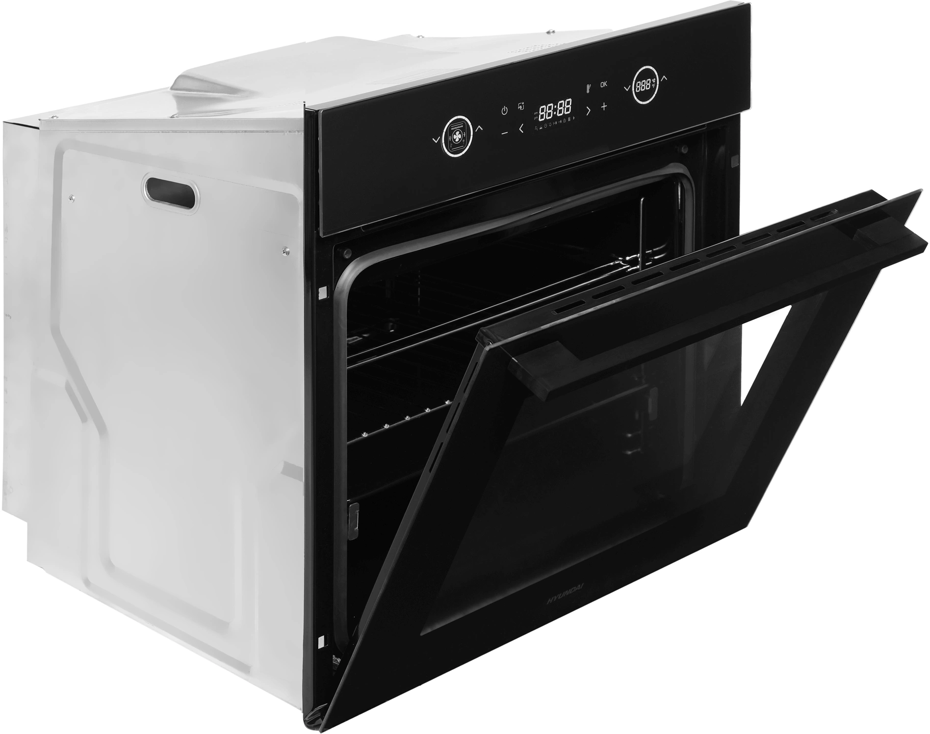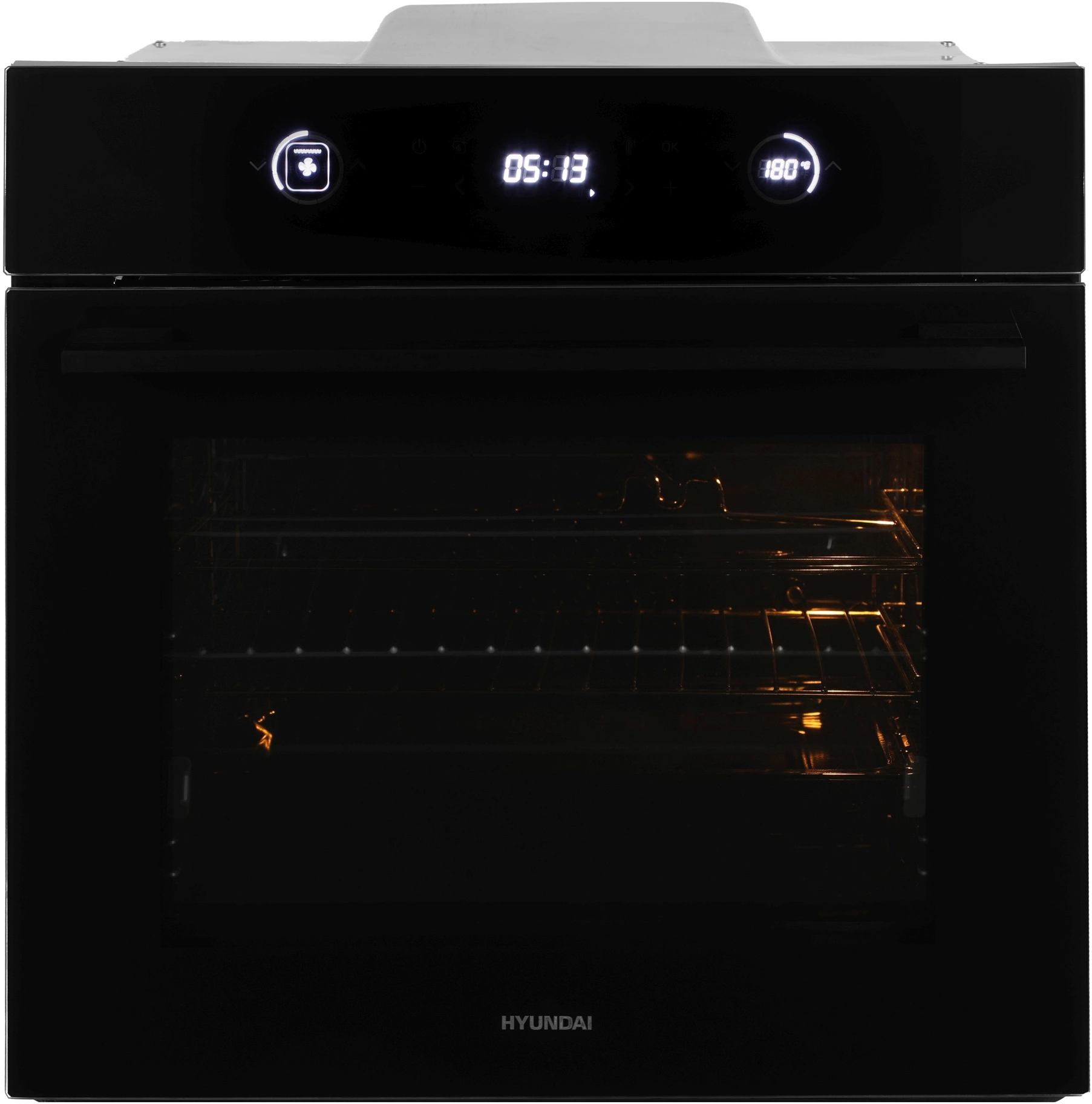 вентилятор охлаждения, вертел, полностью стеклянная внутренняя поверхность дверцы духовки, телескопические направляющие