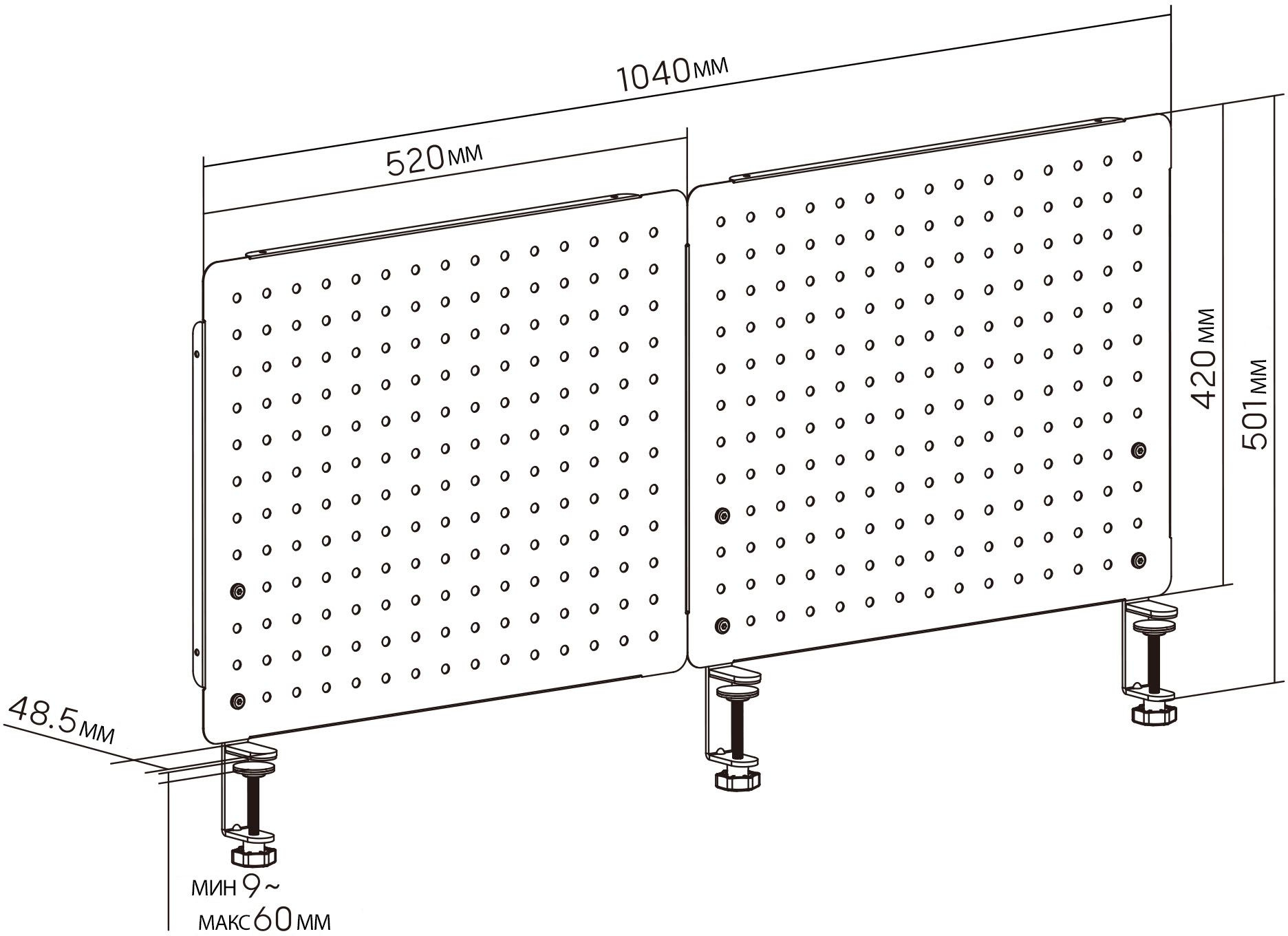 - Двойная перфорированная панель на струбцине для организации рабочего пространства на столе, цвет черный + белый