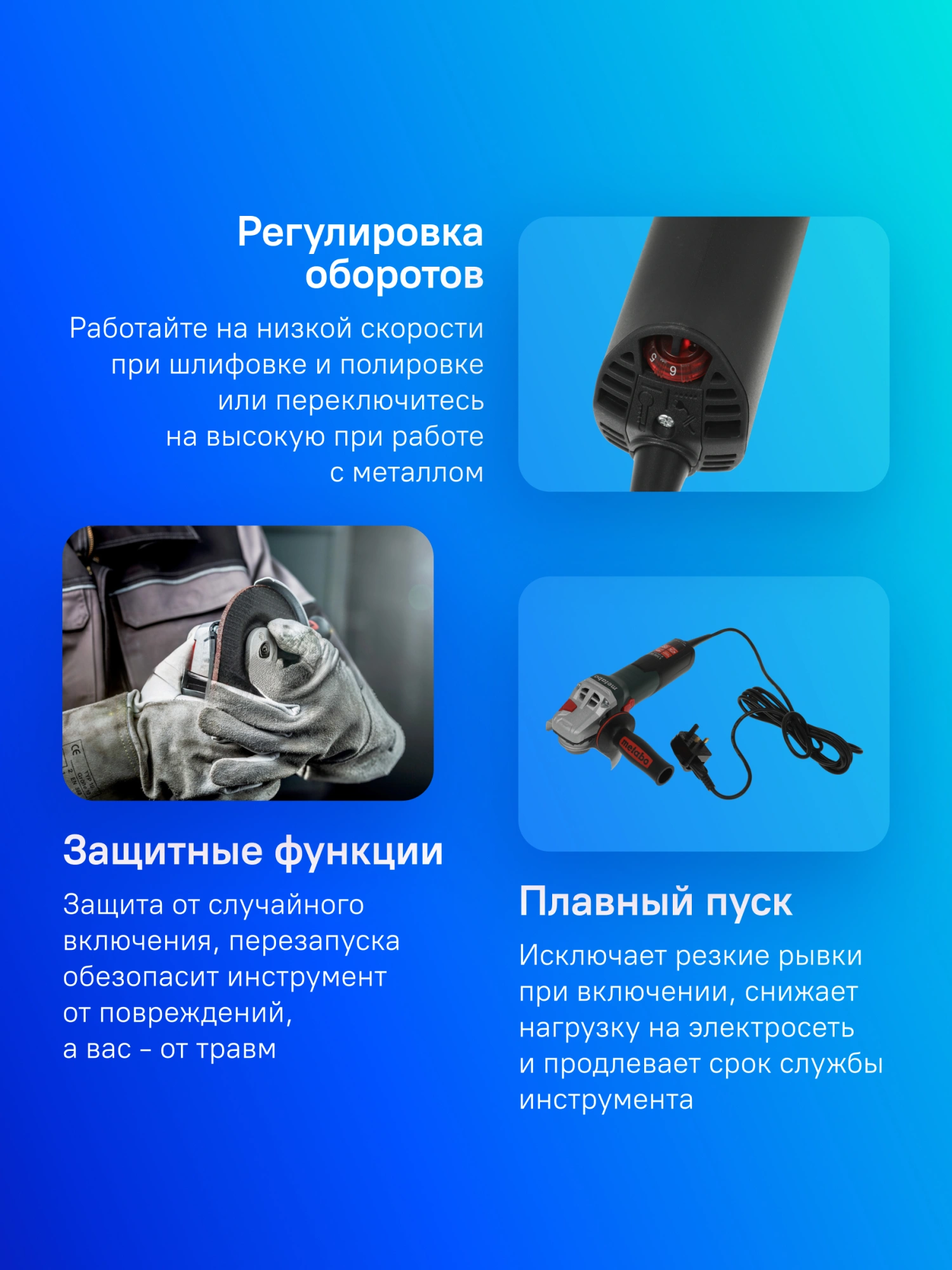 УШМ, защитный кожух, опорный фланец, зажимная гайка M-Quick, дополнительная рукоятка.