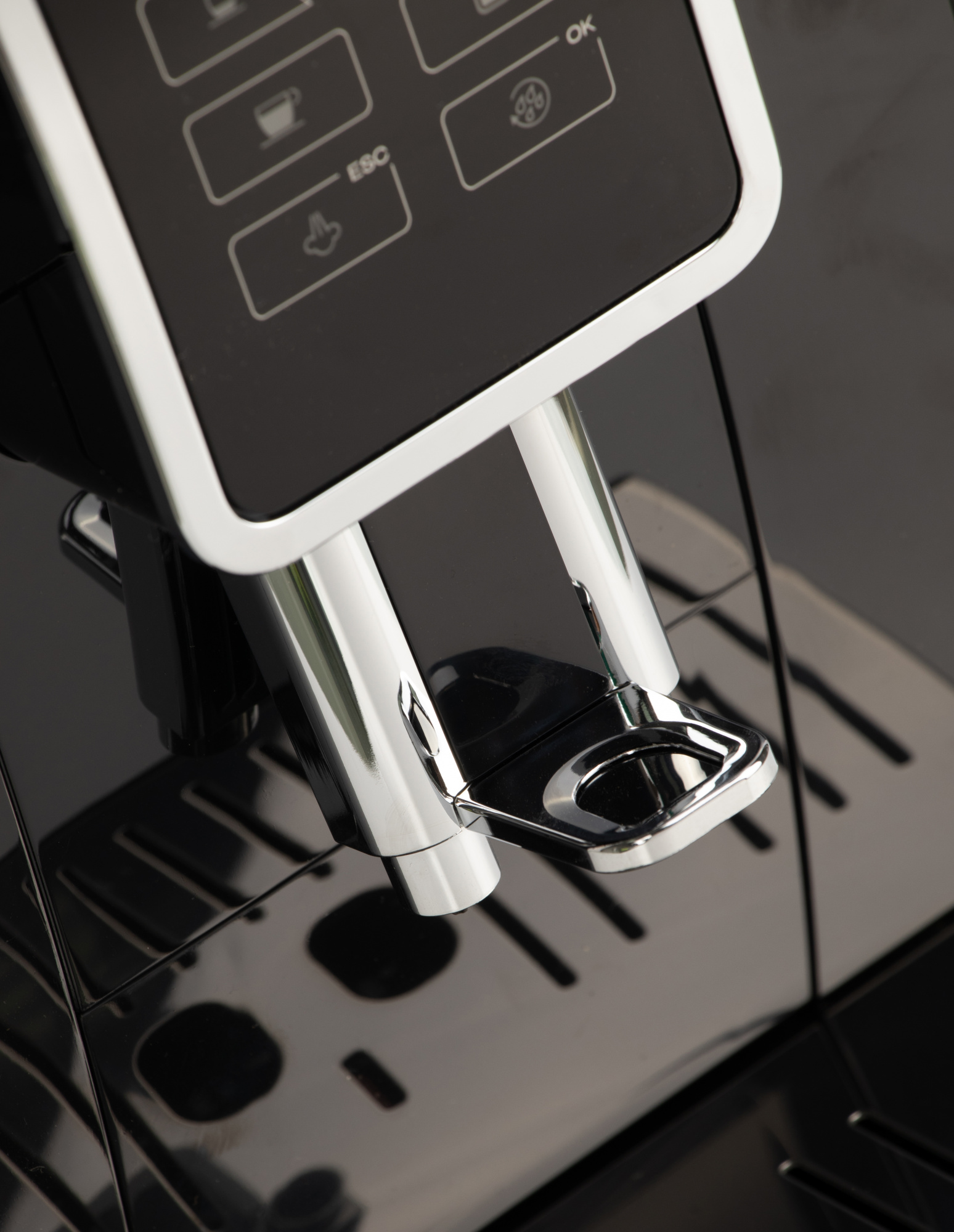 Автоматическая кофемашина DeLonghi ECAM350.15.B – довольно компактная модель, выполненная в строгом лаконичном дизайне. Она гармонично впишется в интерьер. Панель управления сенсорная, отдельно вынесены кнопки для быстрого выбора наиболее популярных напитков: эспрессо, лунго, long.