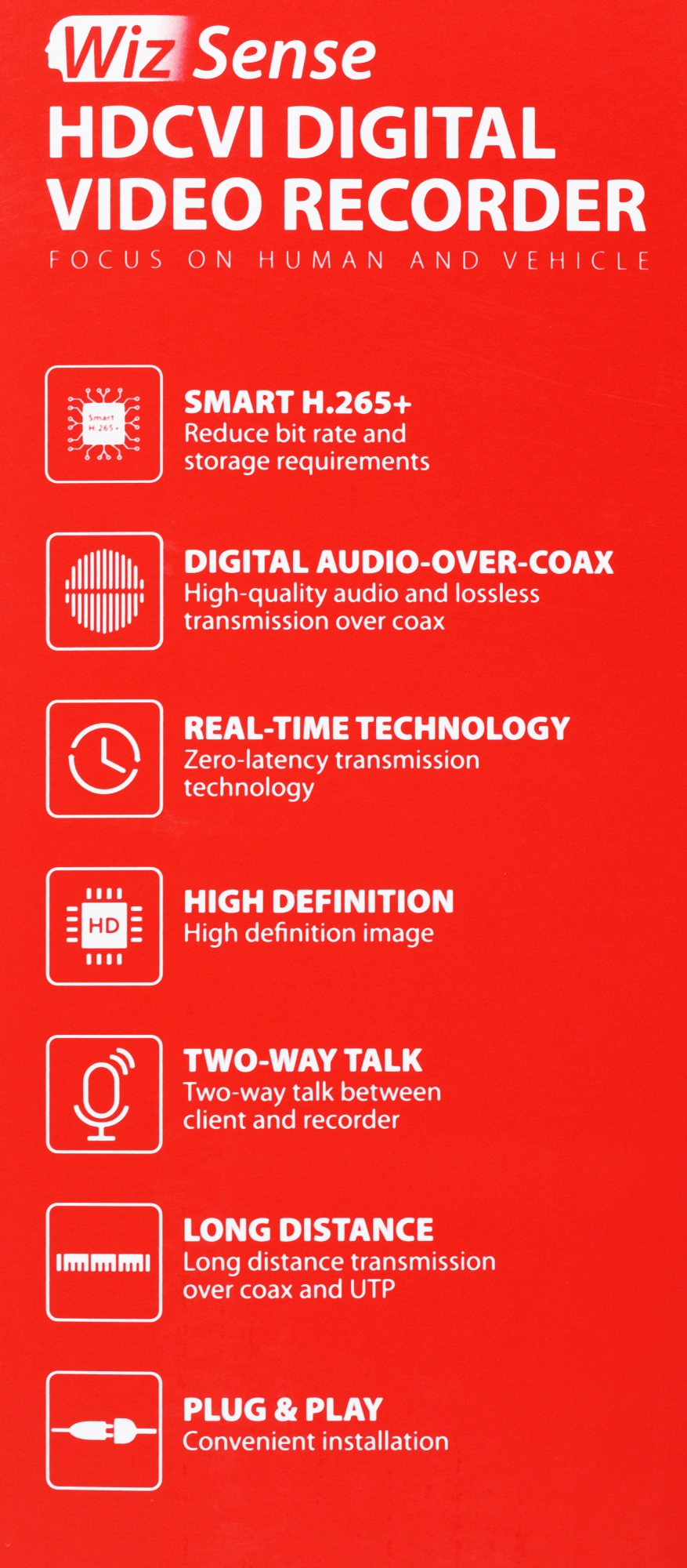 Формат видеосигнала: HDCVI, AHD, TVI, IP, CVBS. отображение: до 5Мп. запись: до 5M-N@10к/с, 1080P@15к/с, 1080N@25к/с. кодирование: AI-Coding, H.265+, H.265, H.264+, H.264