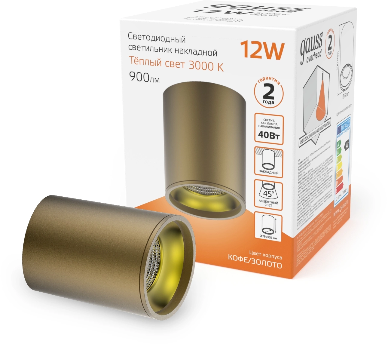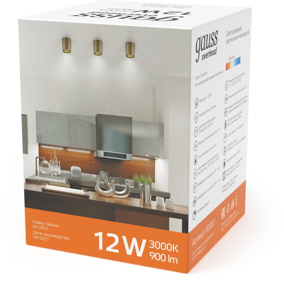 Светильник Gauss Overhead потолоч. 12Вт 3000K цв.св.:белый теплый коричневый (HD001)