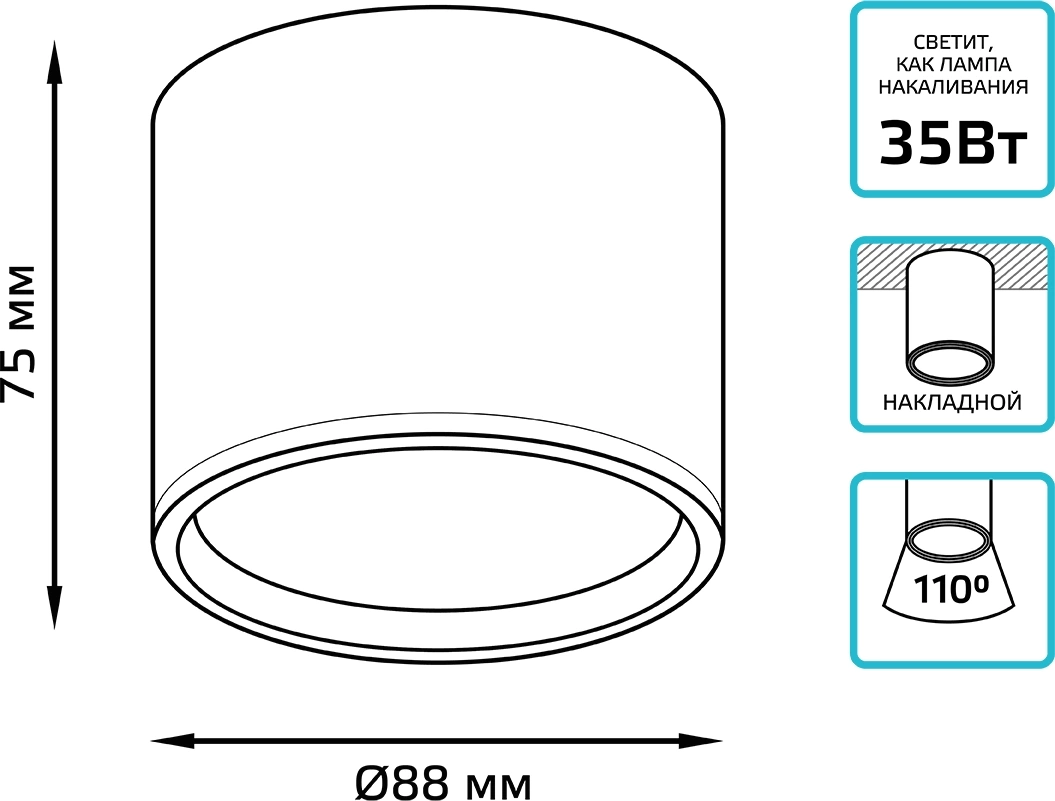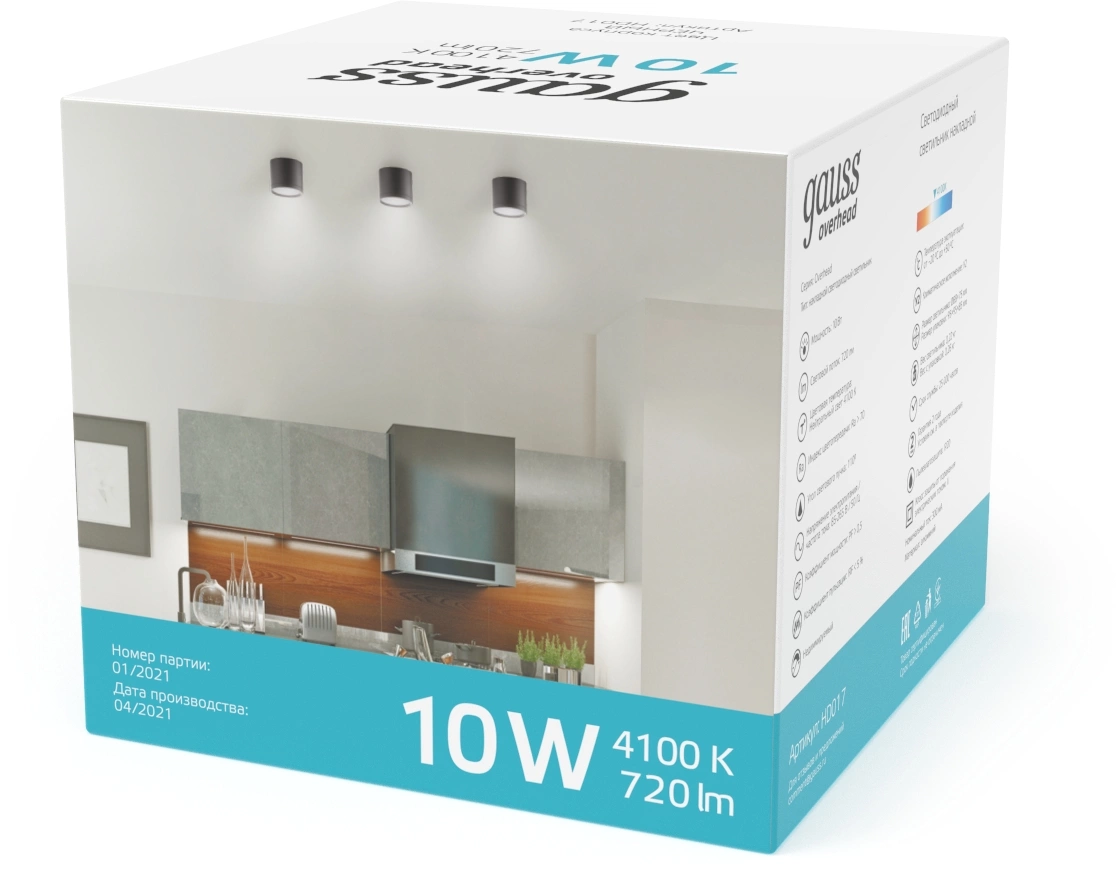 Светильник Gauss Overhead потолоч. 10Вт 4100K цв.св.:белый нейтральный серебристый (HD020)