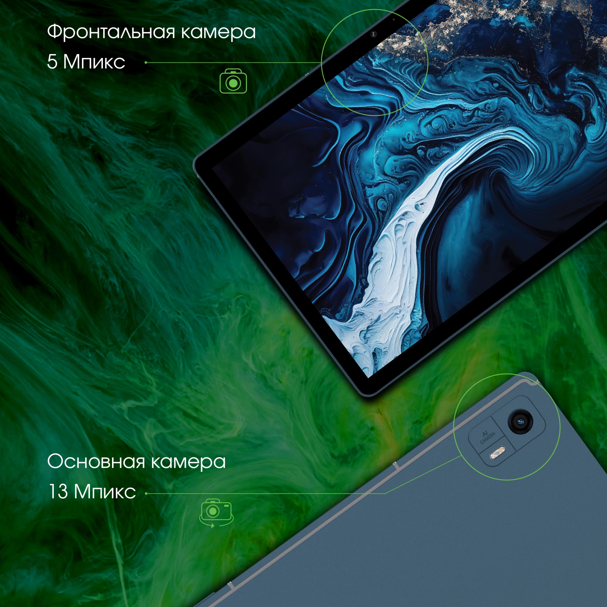 На боковых гранях находятся кнопки переключения громкости, включения, блокировки, динамики, микрофон, слот для SIM-карт, а также разъём для зарядки. За скорость «соображения» гаджета отвечает 8-ядерный процессор Unisoc Tiger T606 с частотой 1.6 ГГц и 8 Гбайт оперативной памяти.