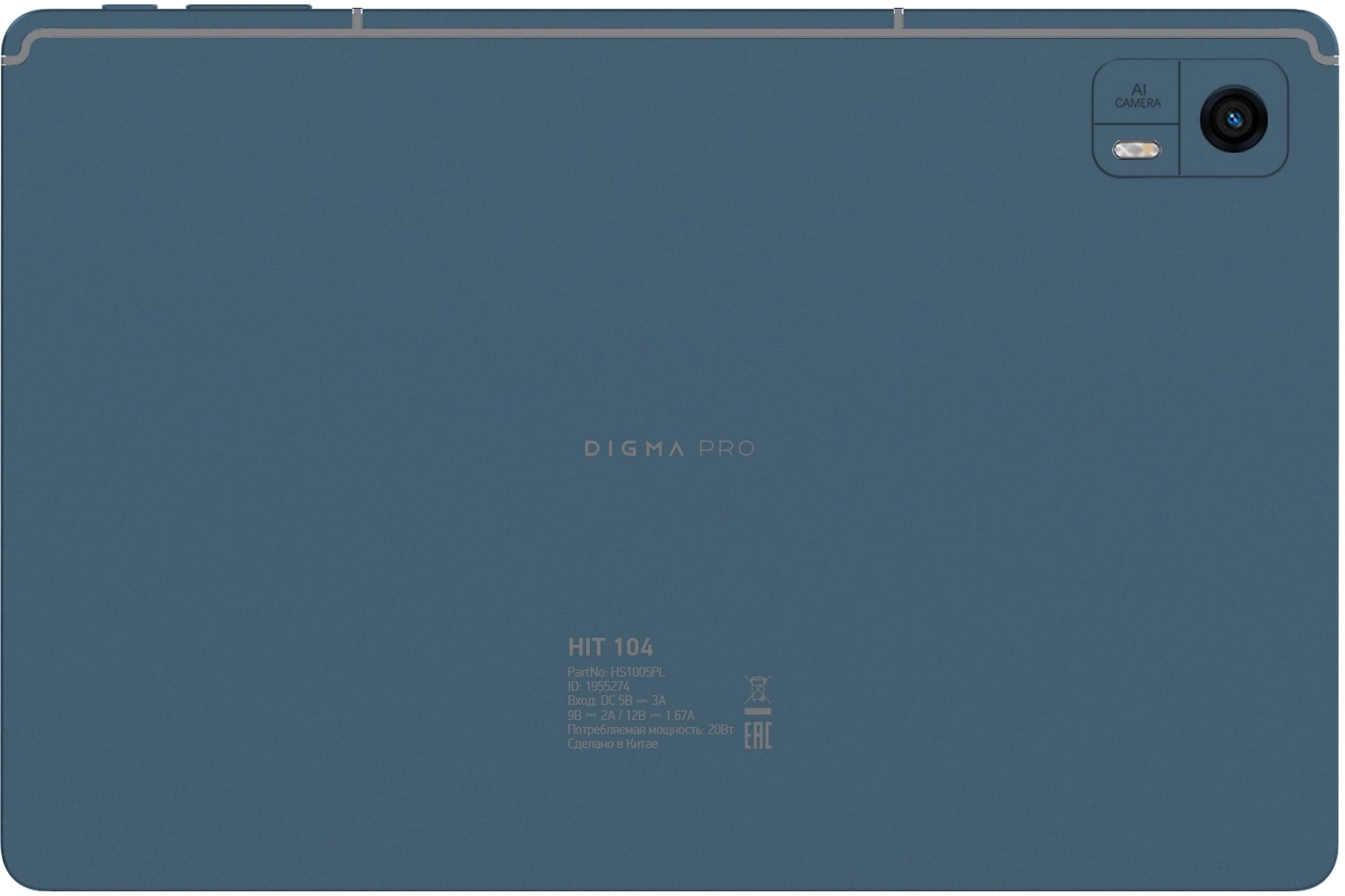 На задней панели Digma Pro HIT 104 размещена основная камера на 13 Мп со вспышкой, которая находятся в небольшом выступающем прямоугольнике. Также сзади размещён логотип бренда.