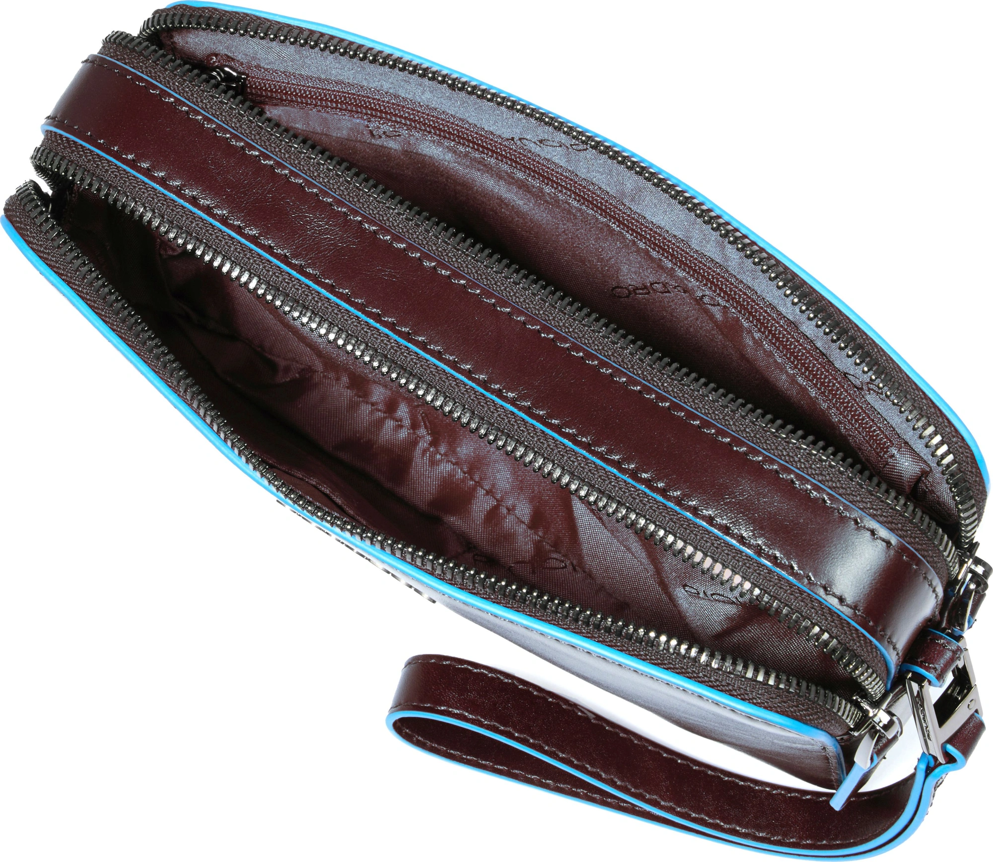 Практичное портмоне с двумя отделениями и ремешком из самой популярной коллекции Piquadro Blue Square. Выполнено из гладкой телячье кожи с фирменным голубым кантом. Имеет два отделения и внешний карман. Отличный вариант на "каждый день" для переноски водительских прав, телефона, ключей и т.д.