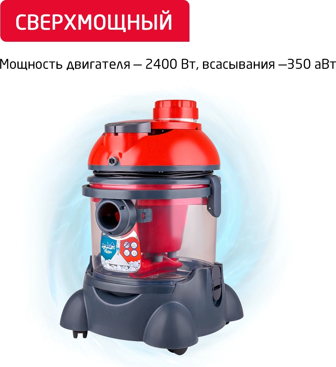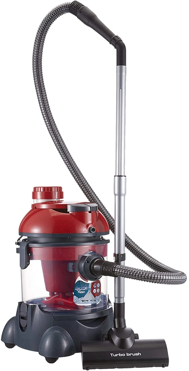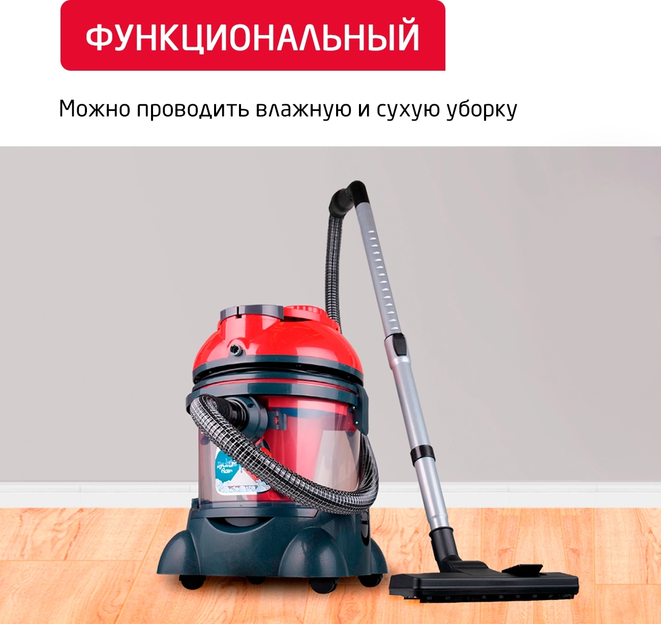 легко очищаемый пылесборник, место для хранения насадок, поворачивающиеся колеса, шланг