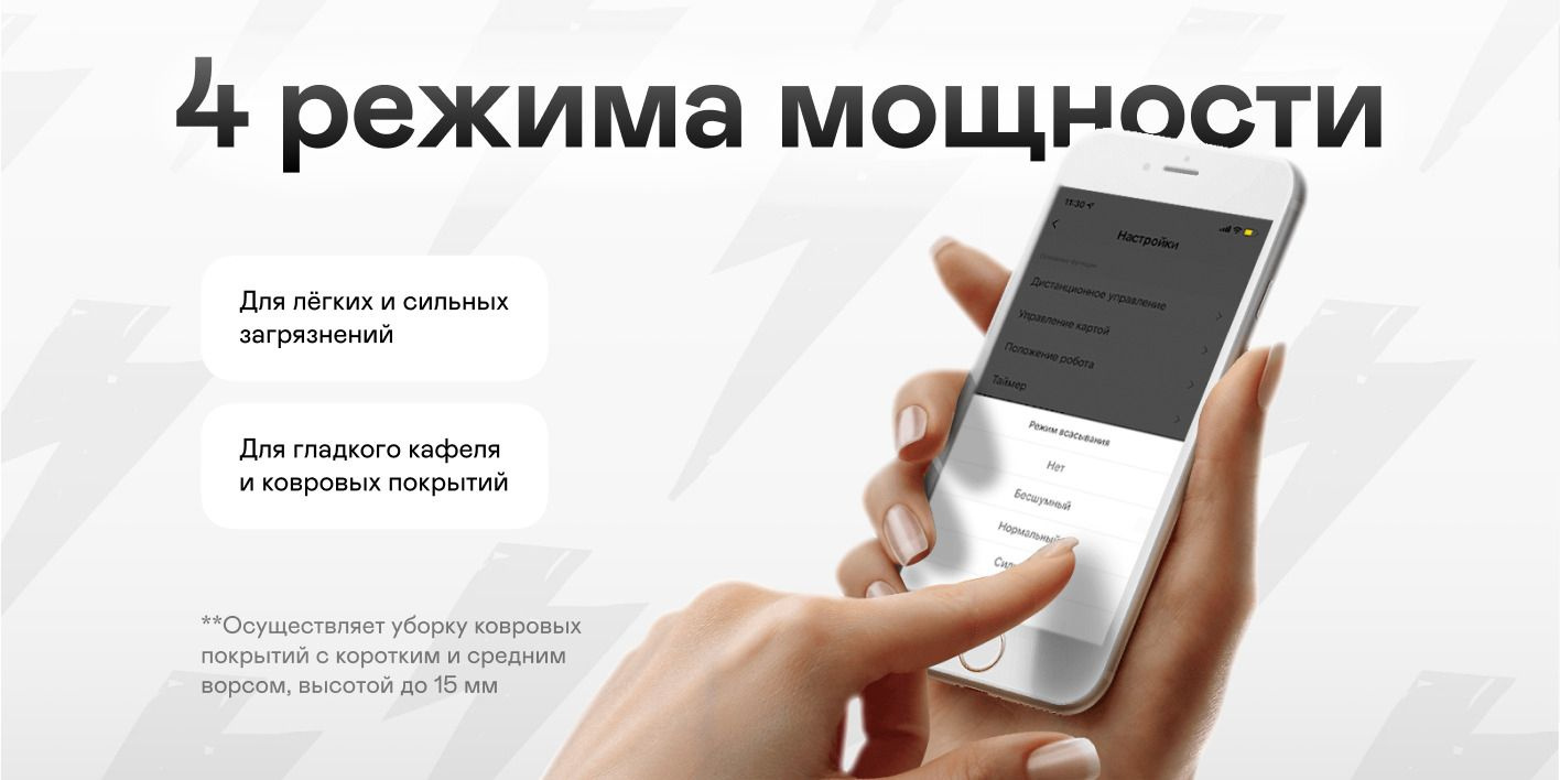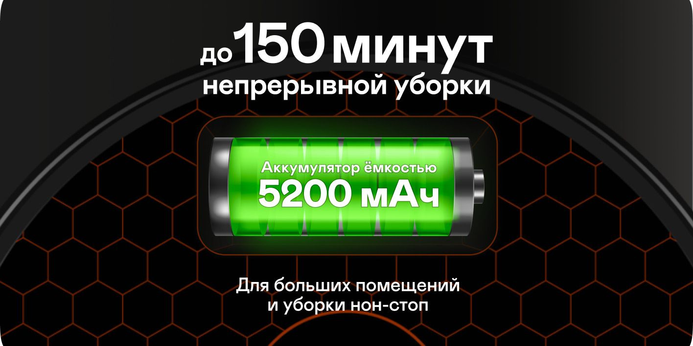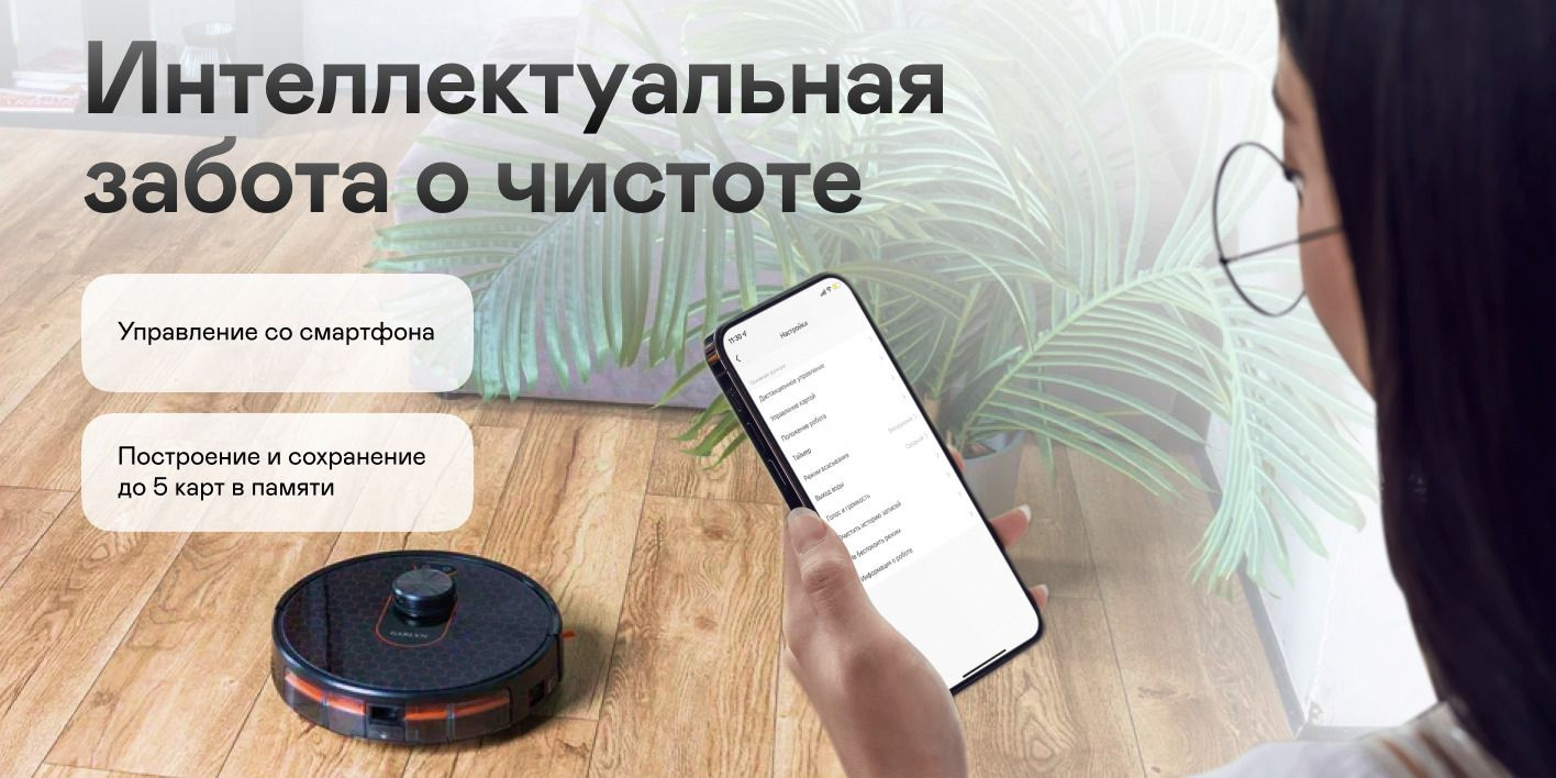 Сухая и влажная уборка одновременно, Мощность всасывания 4000 Па, Управление со смартфона, Аккумулятор ёмкостью 5200 мА*ч, электронная регулировка мощности