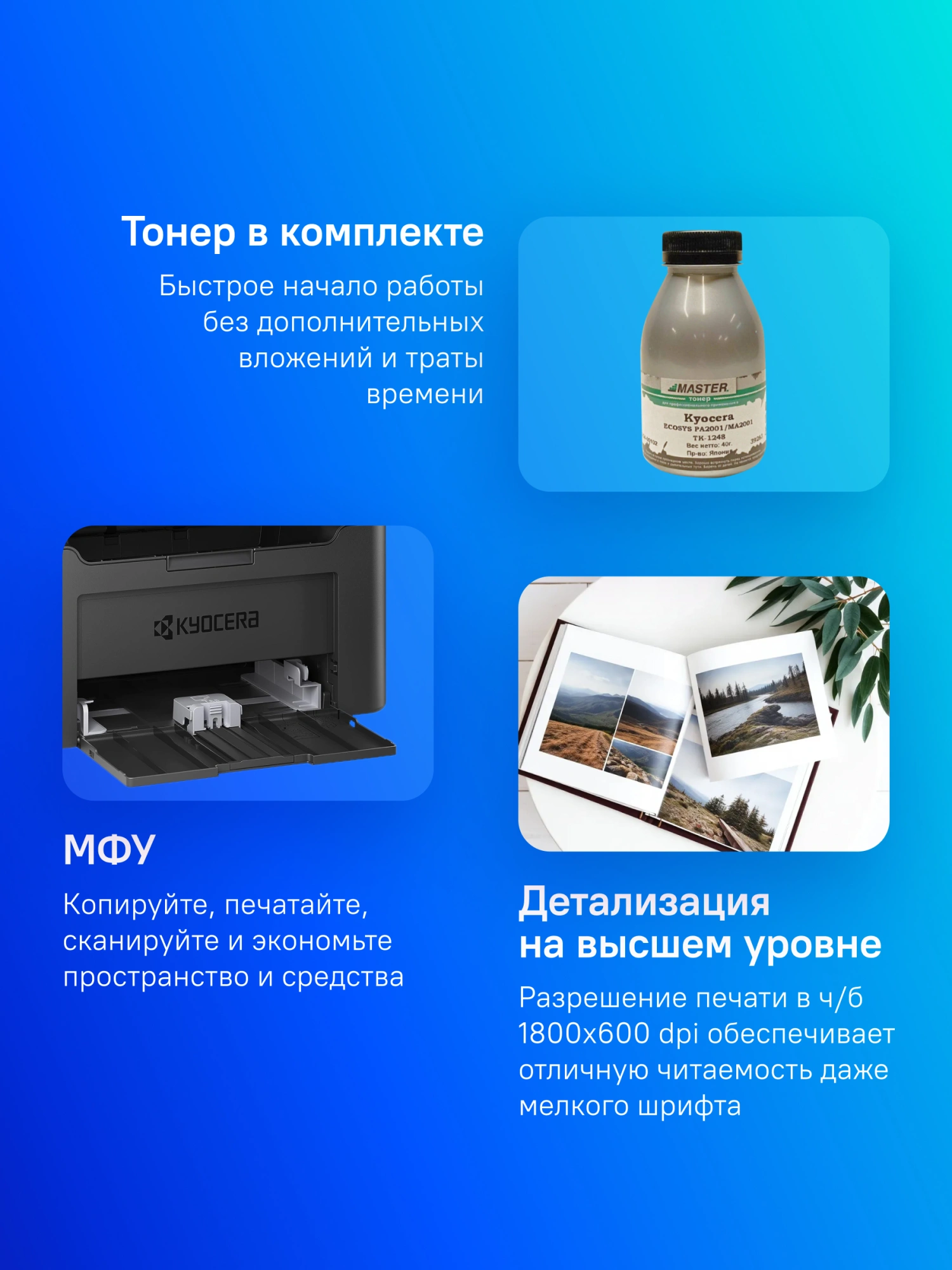 Пробный тонер на 700 стр., кабель USB, кабель питания