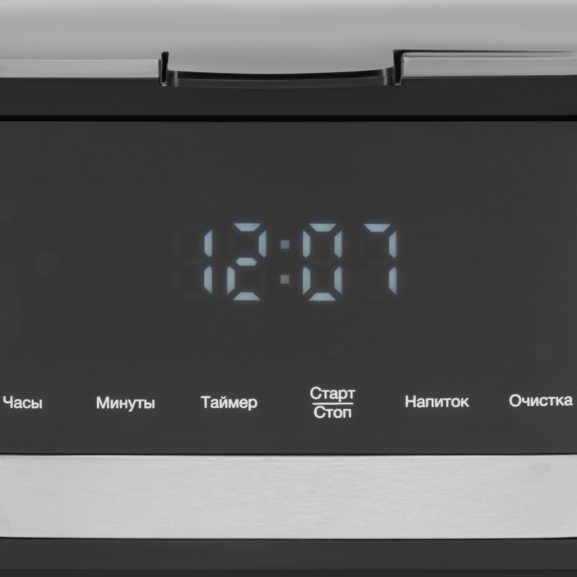 Система самоочистки. После 100 рабочих циклов на панели управления загорается индикатор, оповещающий о необходимости очистки от накипи. Функцию можно запустить соответствующей кнопкой.