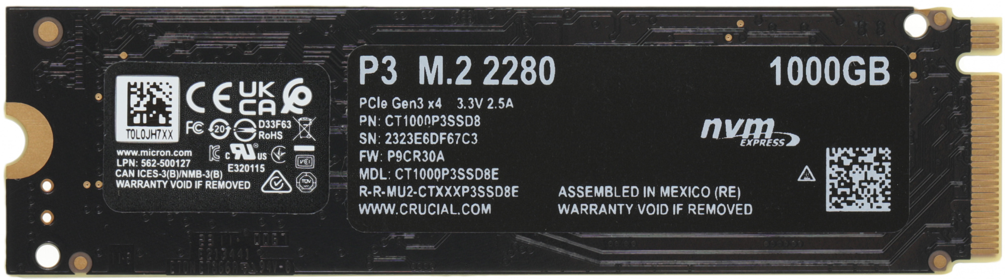 Накопитель SSD Crucial PCIe 3.0 x4 1TB CT1000P3SSD8