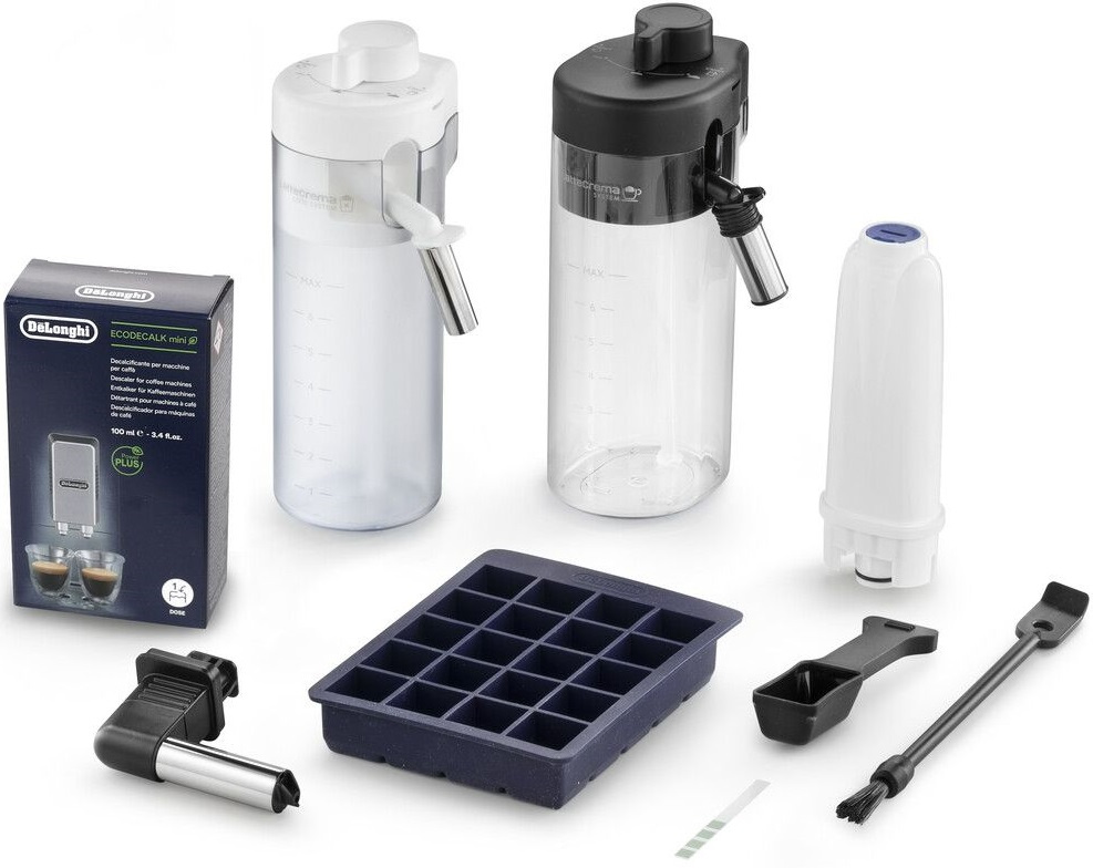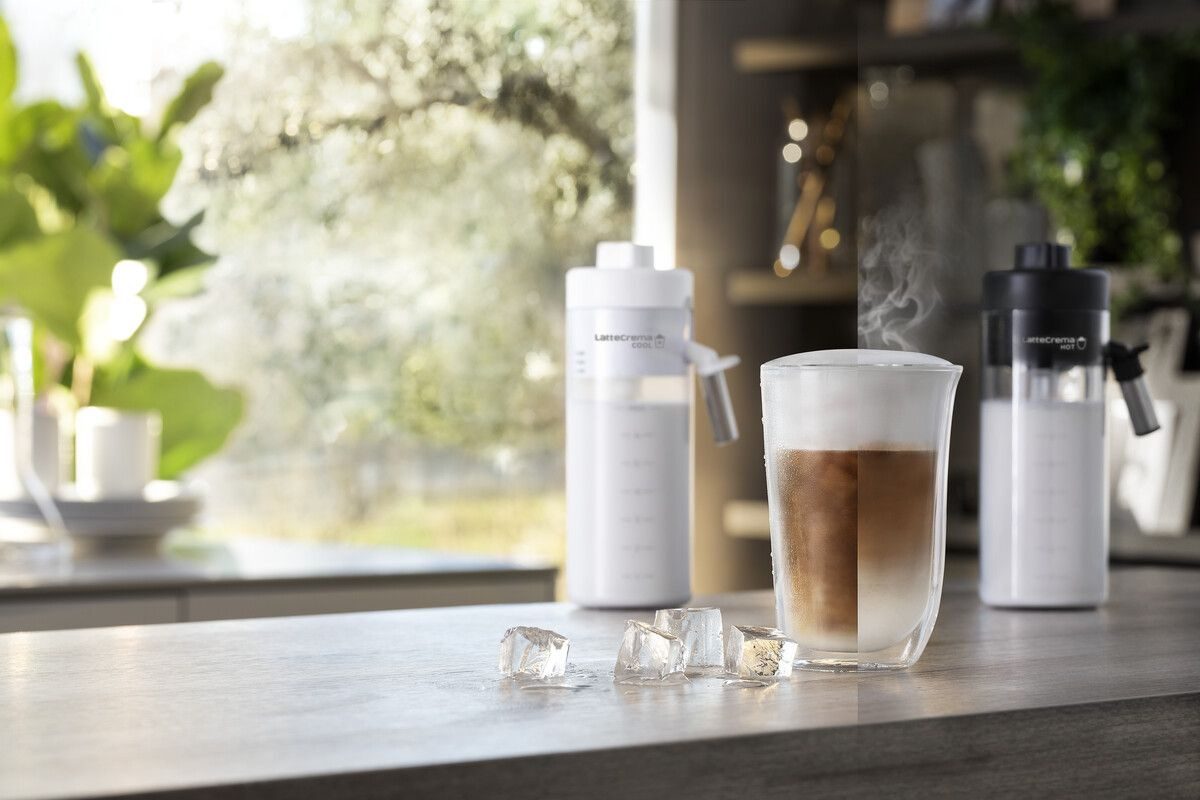 Система горячего и холодного молока Latte crema;Красочный дисплей 3.5 TFT с мягким сенсорным управлением; Два контейнера для молока, 4 индивидуальных профиля, 2 напитка одновременно. Подогрев графина