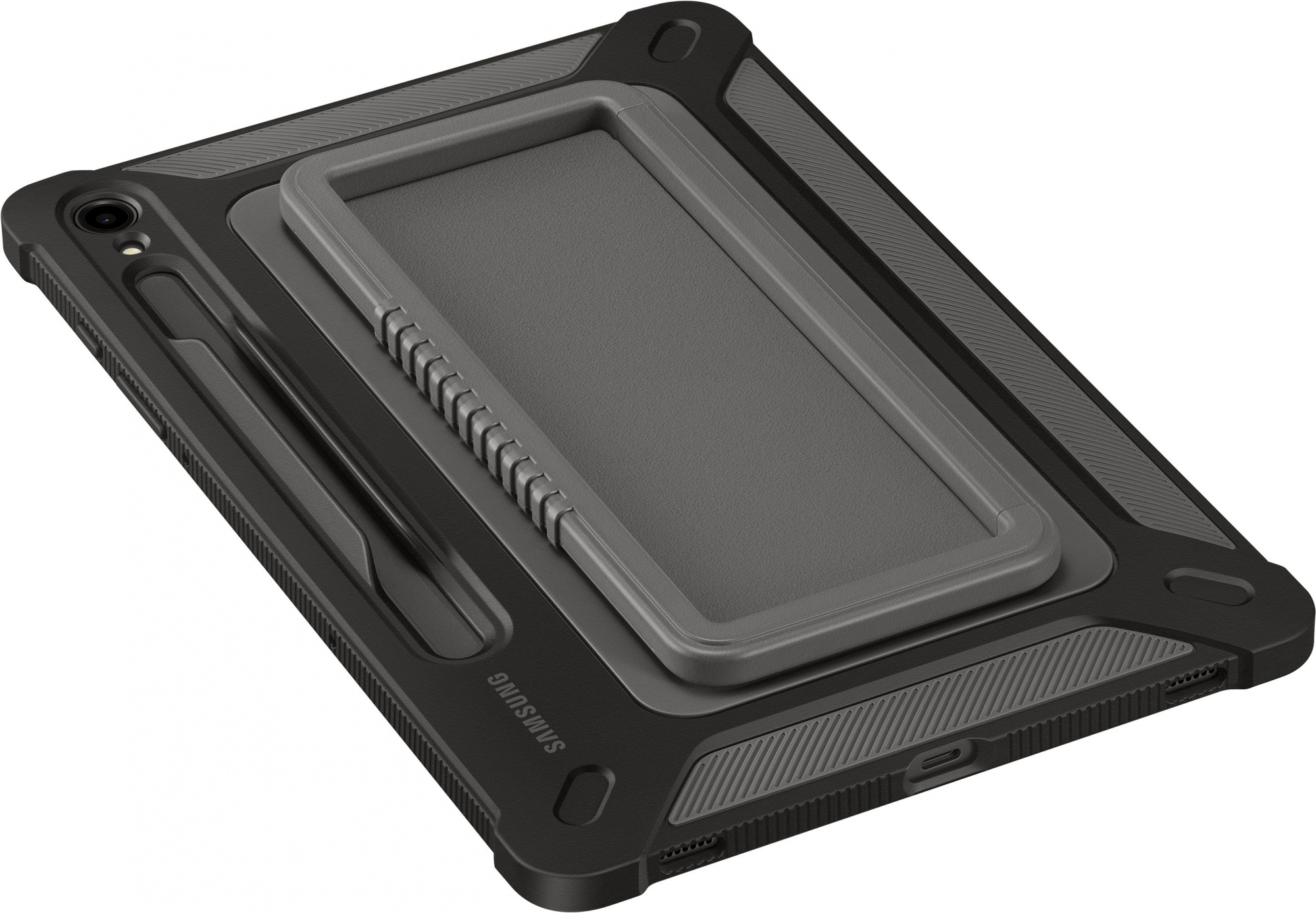 Чехол-накладка с повышенным уровнем защиты корпуса устройства и встроенным держателем-подставкой с размещением под свободным углом. Материал: поликарбонат, термопластичный полиуретан, полиамид, нержавеющая сталь. Совместимо только с Galaxy Tab S9.