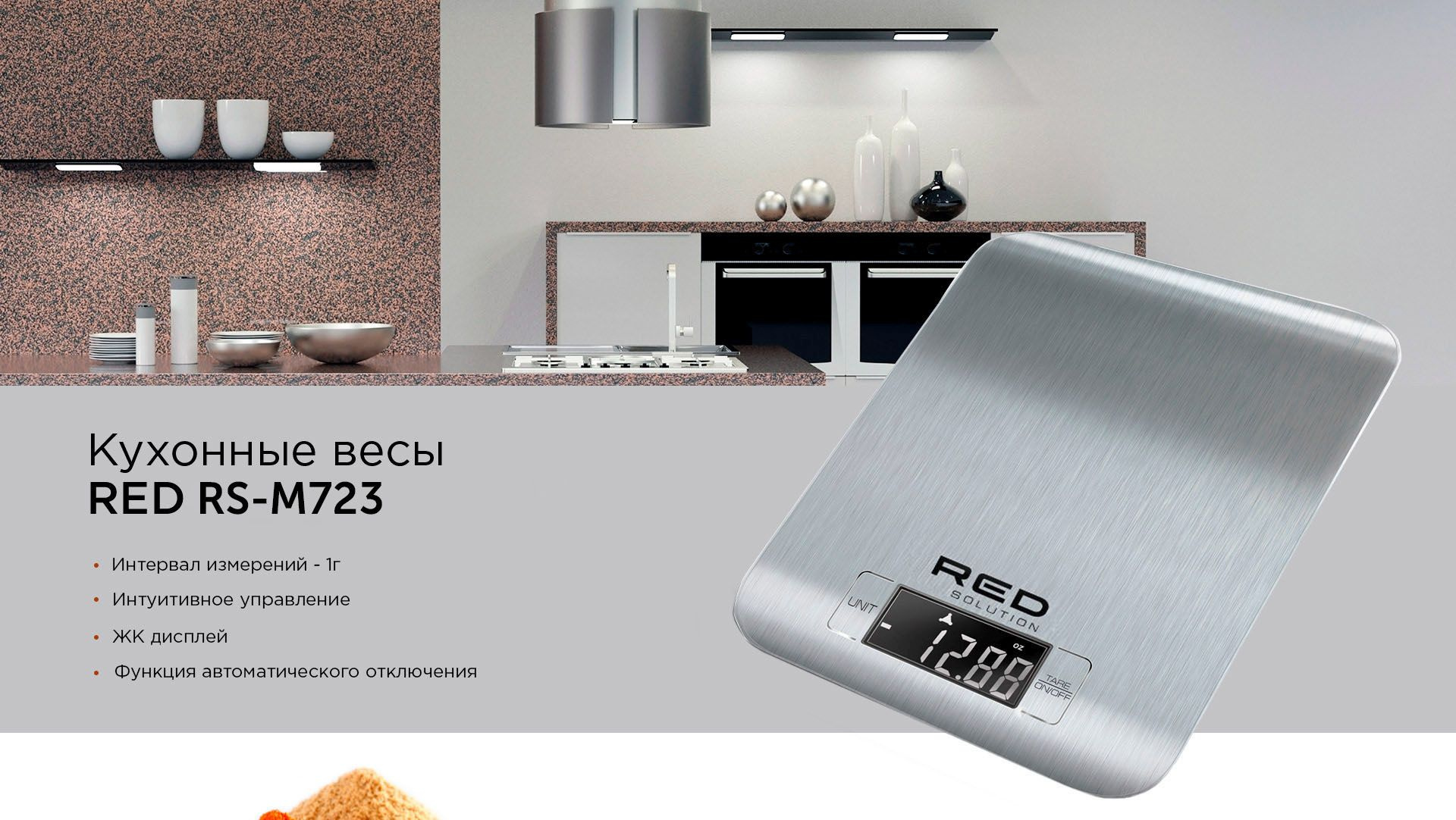 Дизайн в стиле хай-тек сделает весы RED SOLUTION RS-M723 украшением вашей кухни! Диапазон измерений до 5 кг с точностью до 1 г, ЖК-дисплей и функция вычета веса тары делает работу с весами удобной и эффективной.
