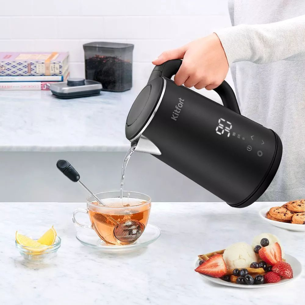 дисплей, кнопка открытия крышки, подставка 360, фильтр от накипи