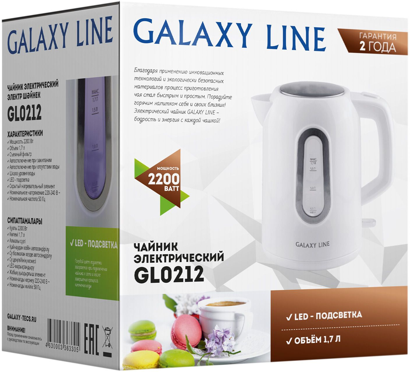 1.7л. 2200Вт белый корпус: пластик (ГЛ0212Л)