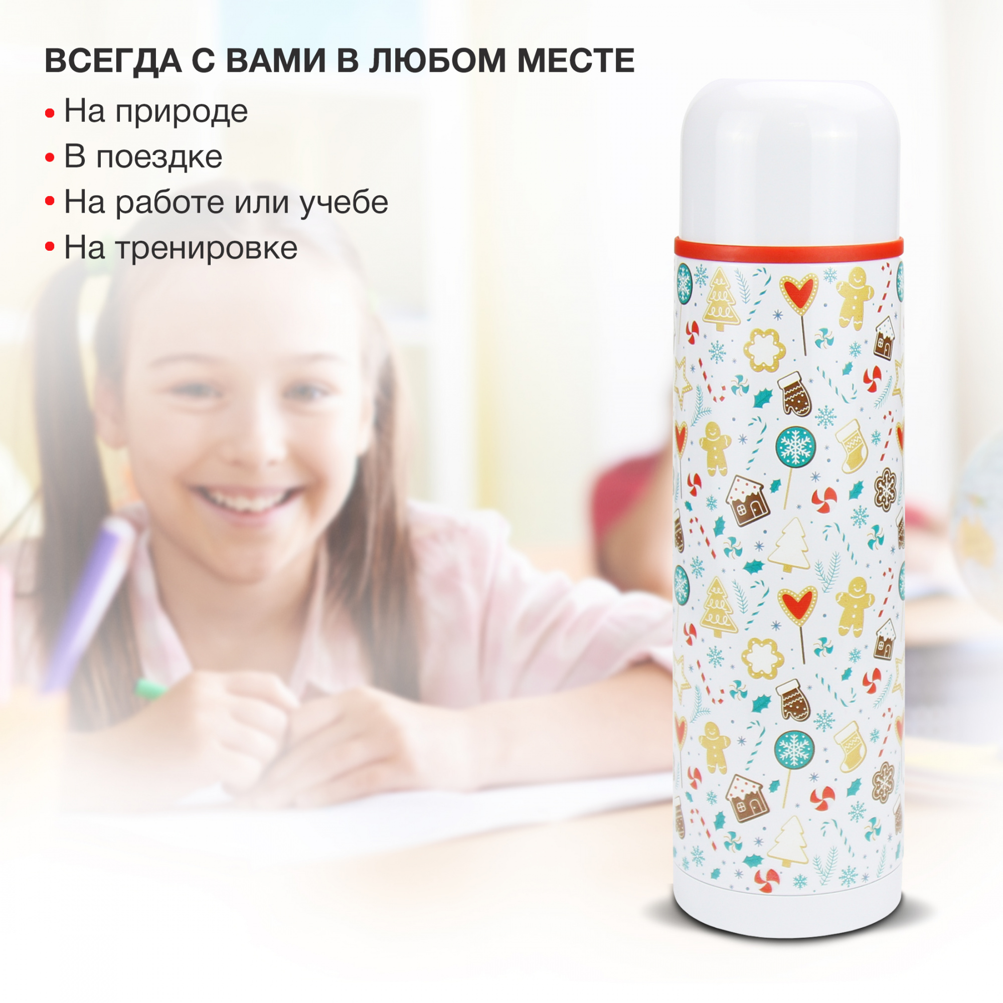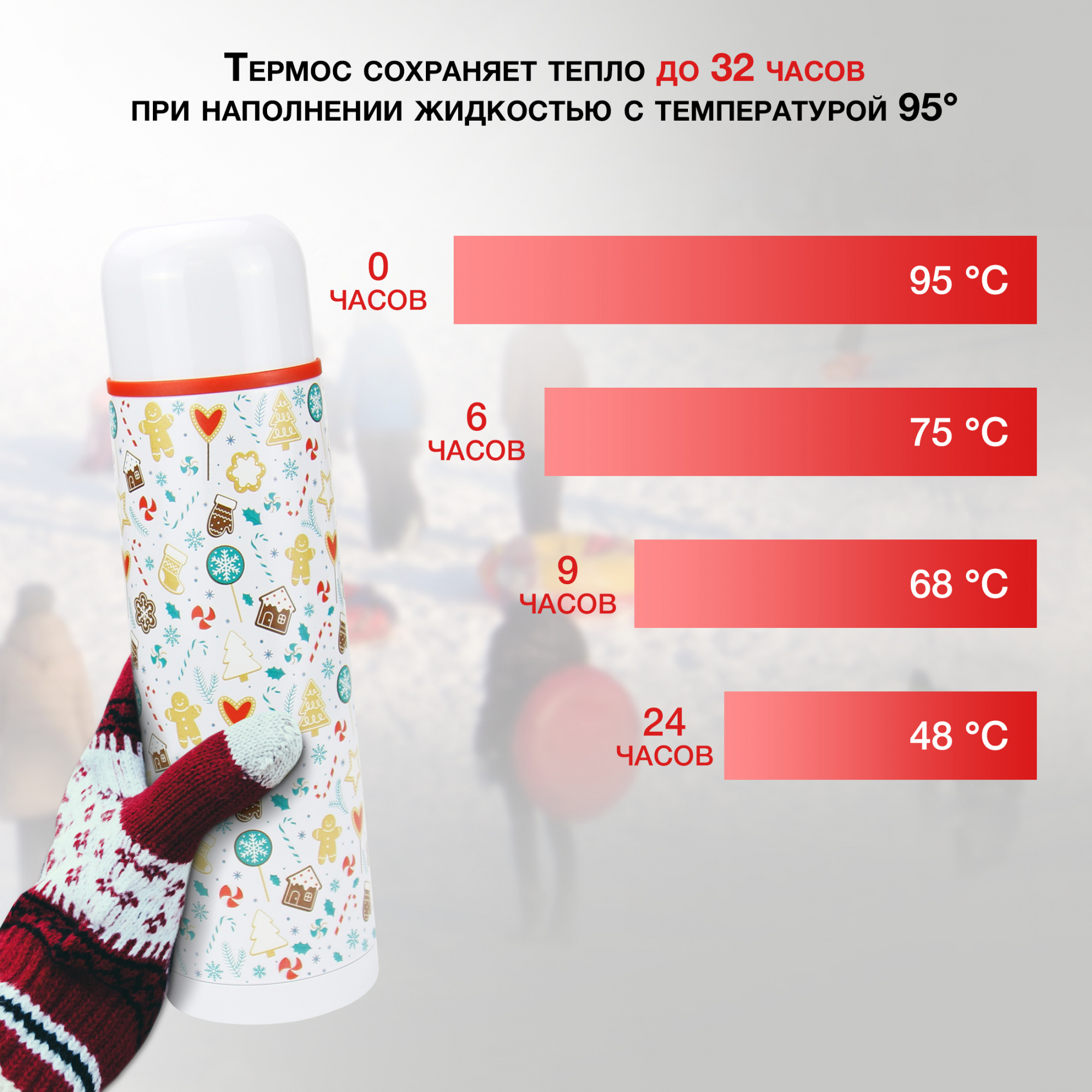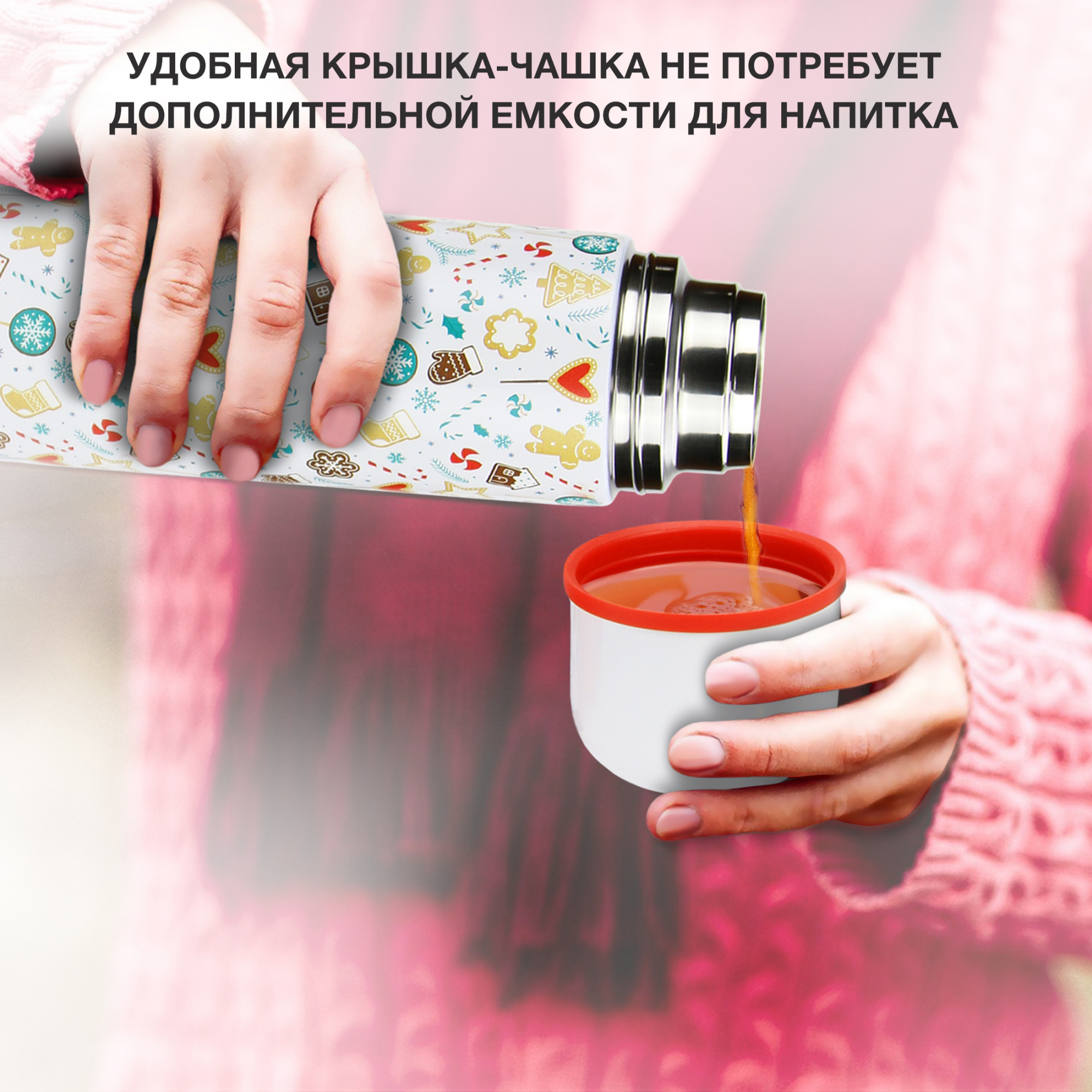 Новогодний дизайн. Праздничный рисунок на корпусе делает термос идеальным подарком на Новы Год и Рождество и повышает настроение при использовании.