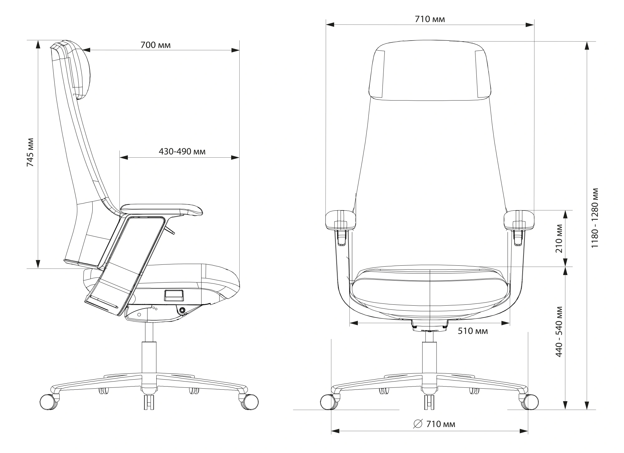 Высота с подлокотниками MIN