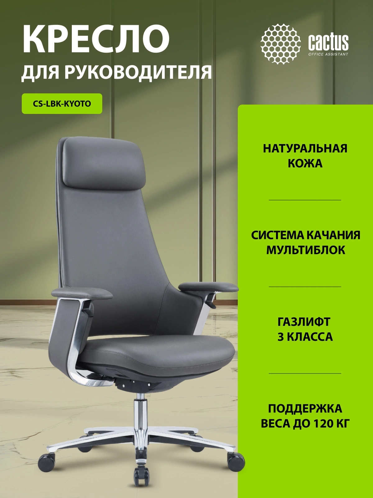 Кресло руководителя Cactus CS-LBK-KYOTO