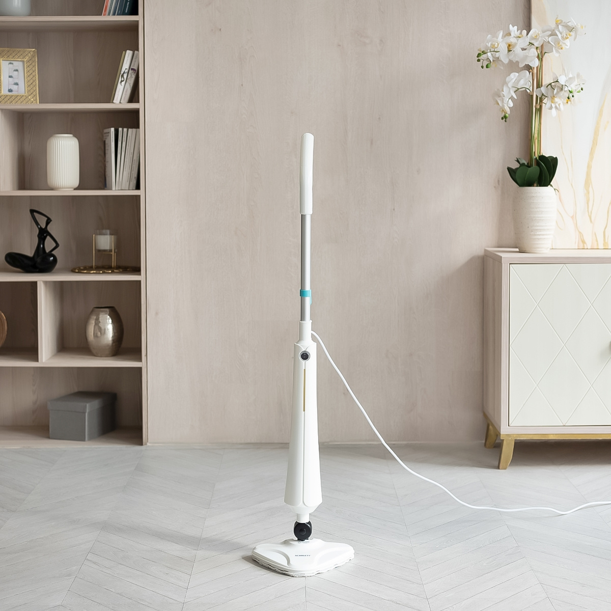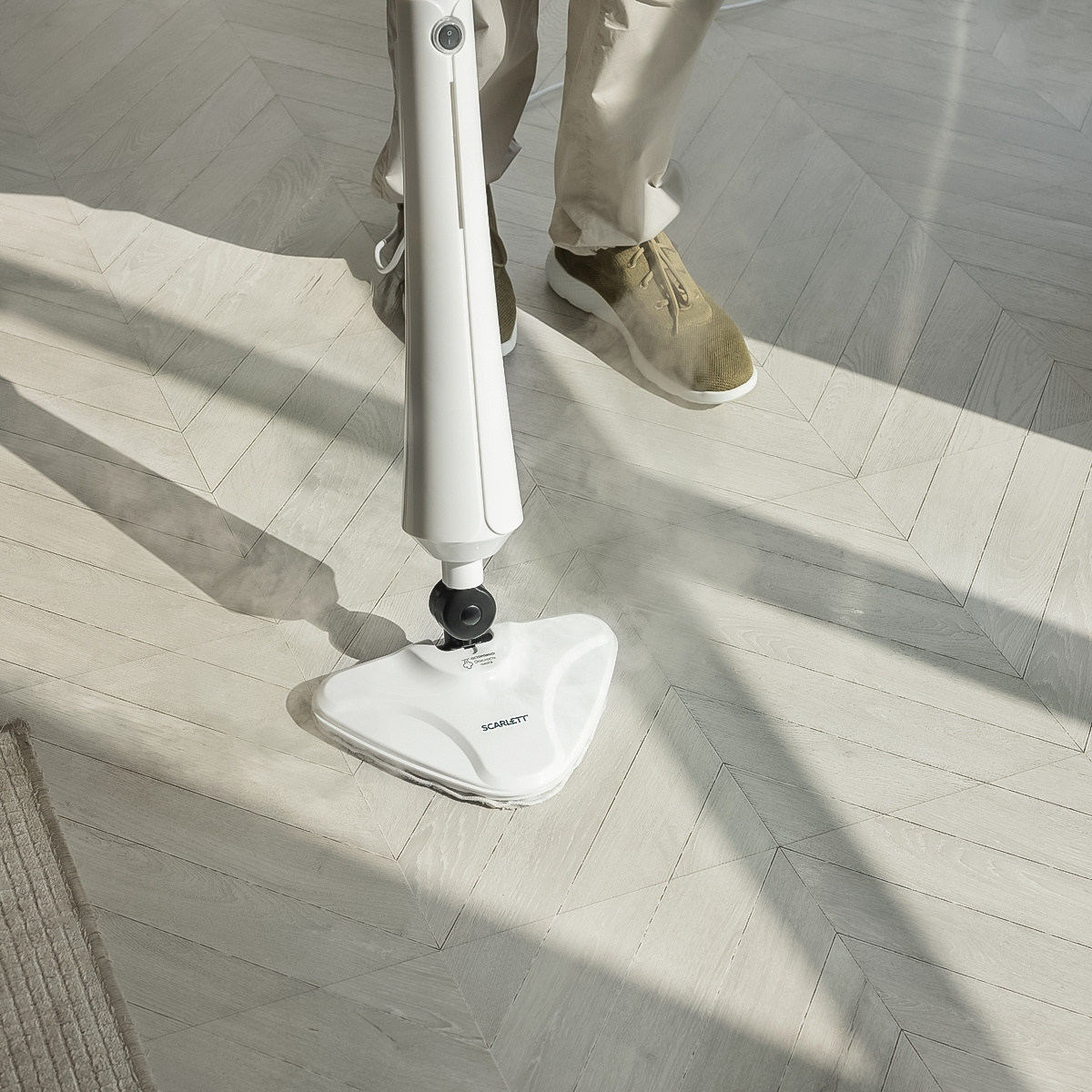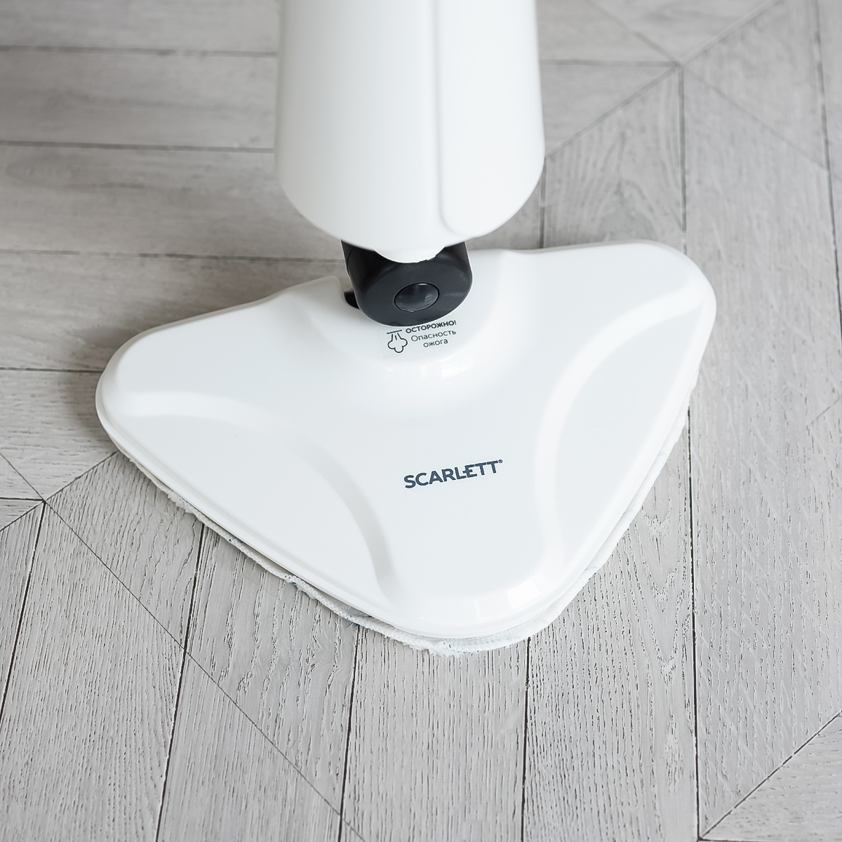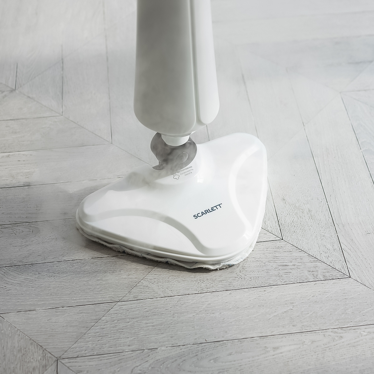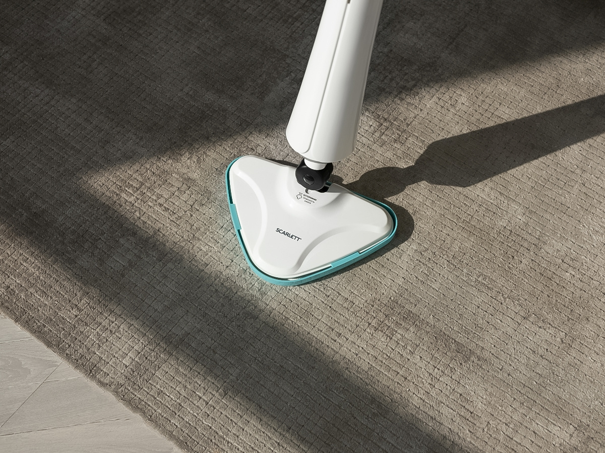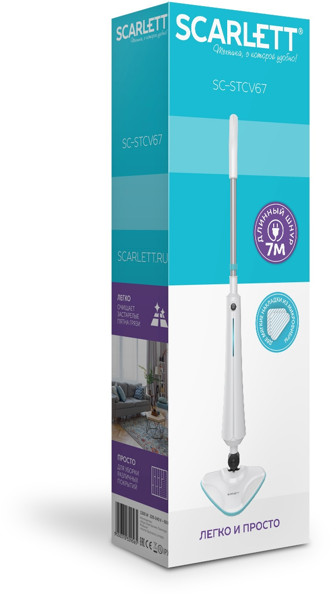 "Длинный шнур 7 метров. Увеличенная емкость бака для воды 350 мл. Легко очищает застарелые пятна. Подходит для уборки различных покрытий"