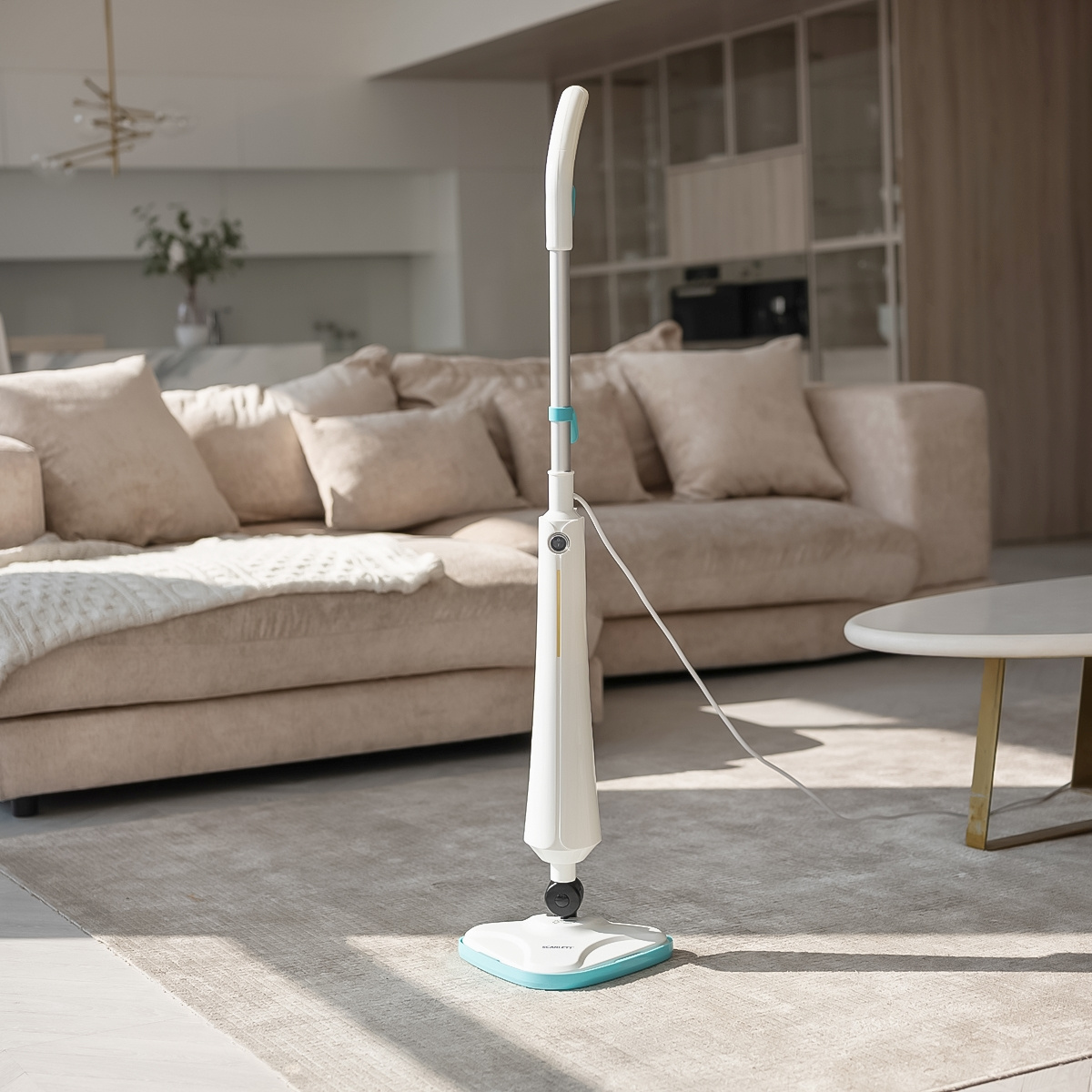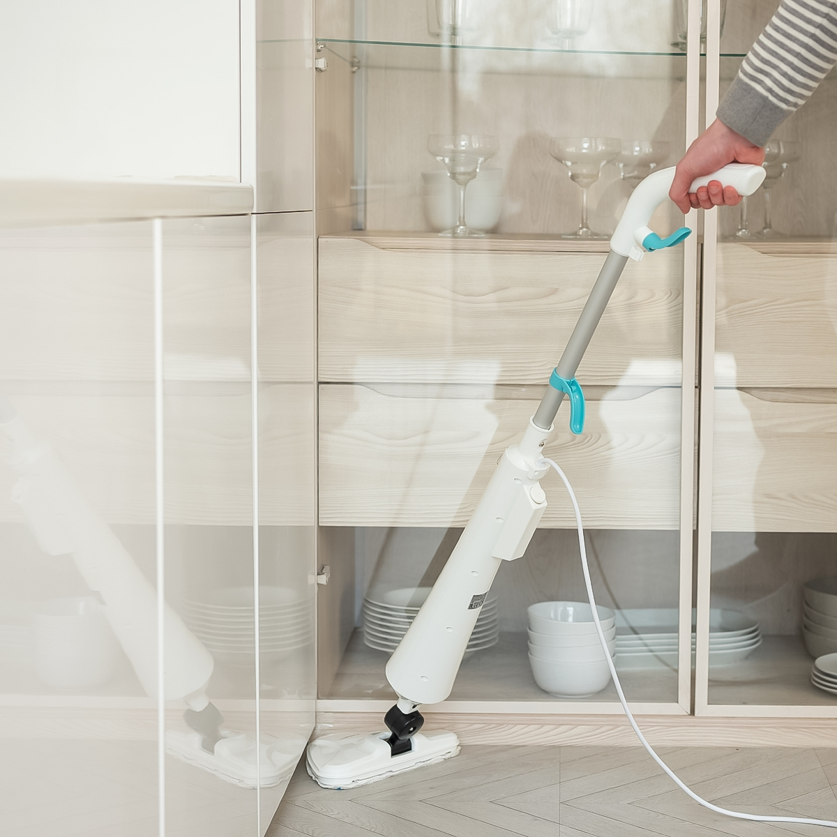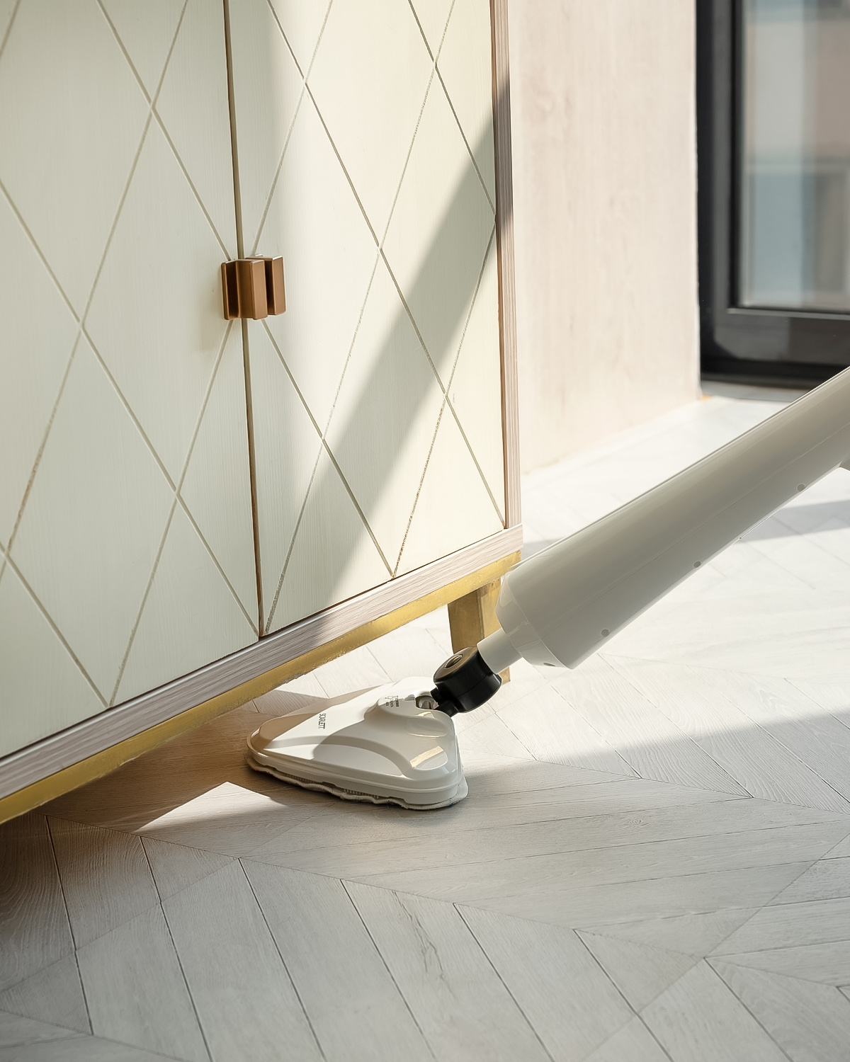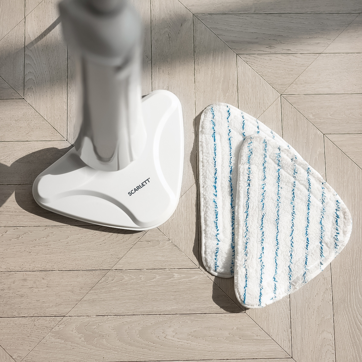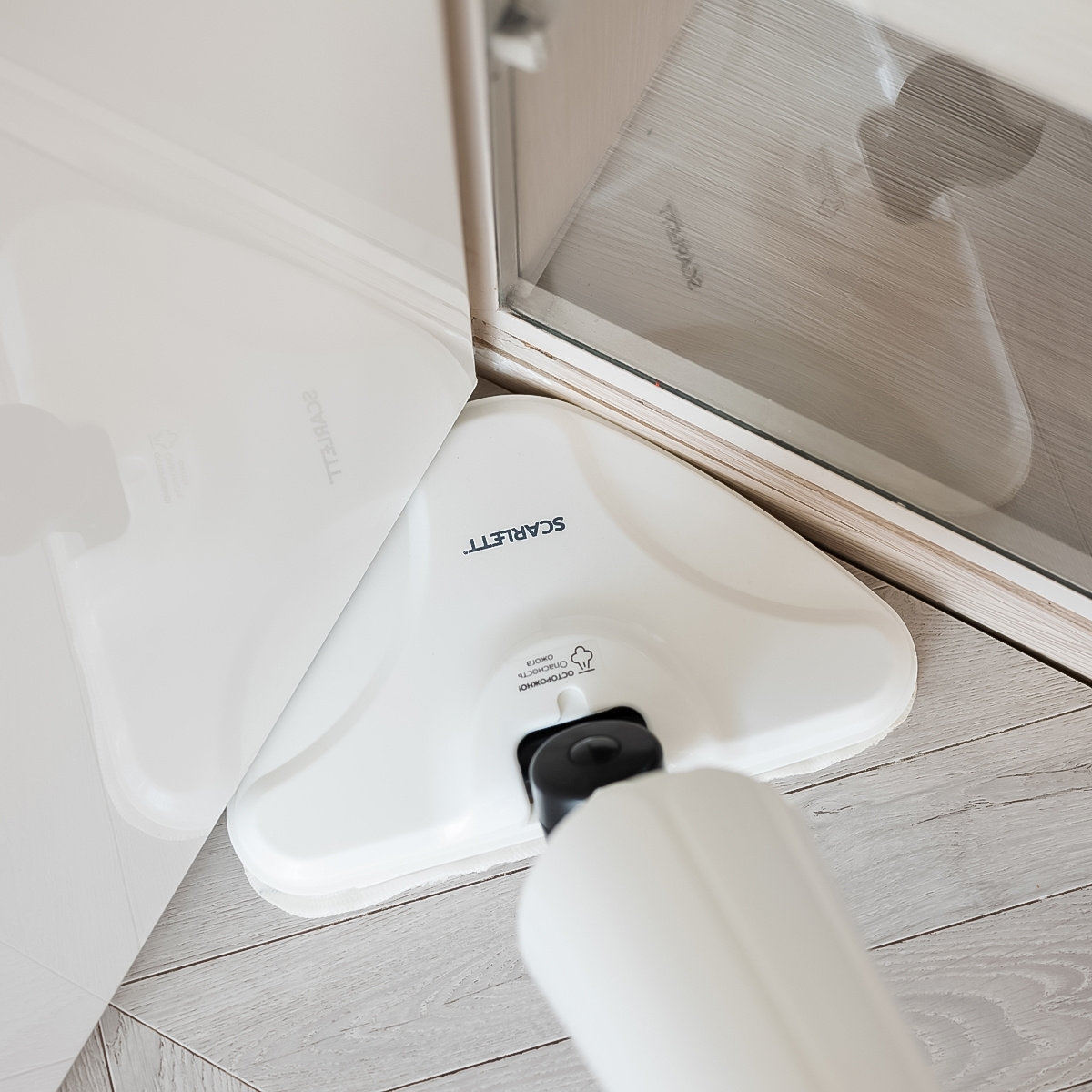 "Длинный шнур 7 метров. Увеличенная емкость бака для воды 350 мл. Легко очищает застарелые пятна. Подходит для уборки различных покрытий"
