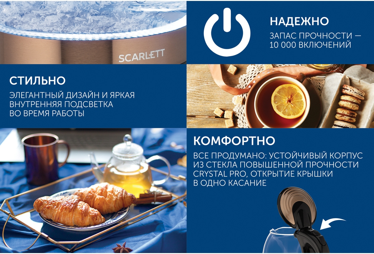 кнопка открытия крышки, подсветка воды, подставка 360, фильтр от накипи