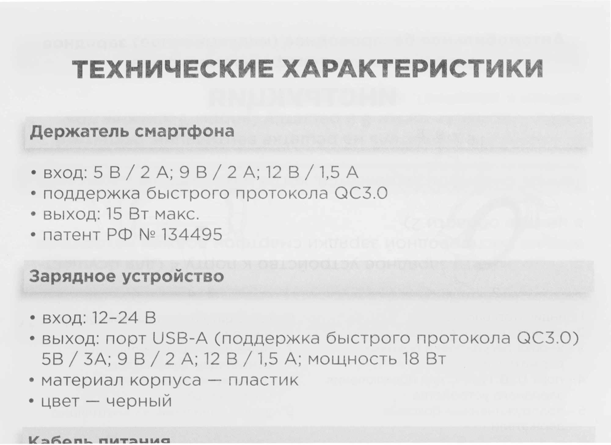 - зарядное автомобильное устройство с QC3.0 (работает от прикуривателя)