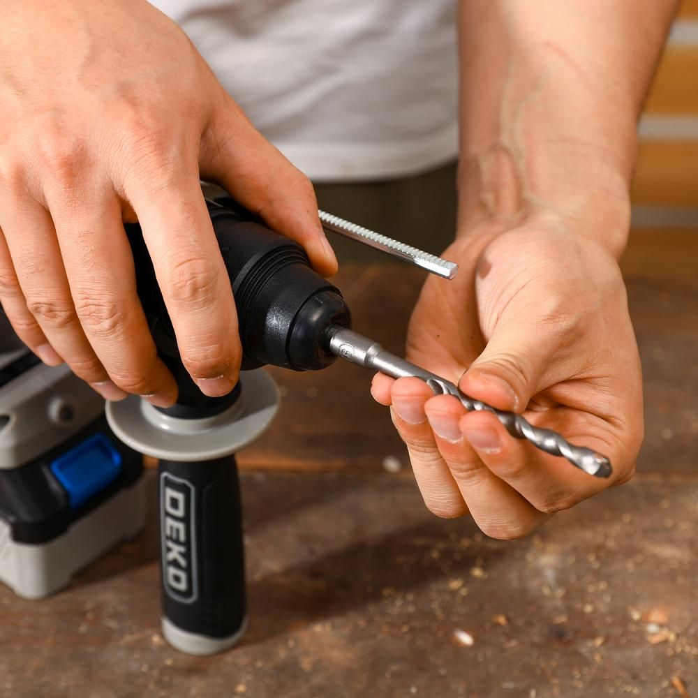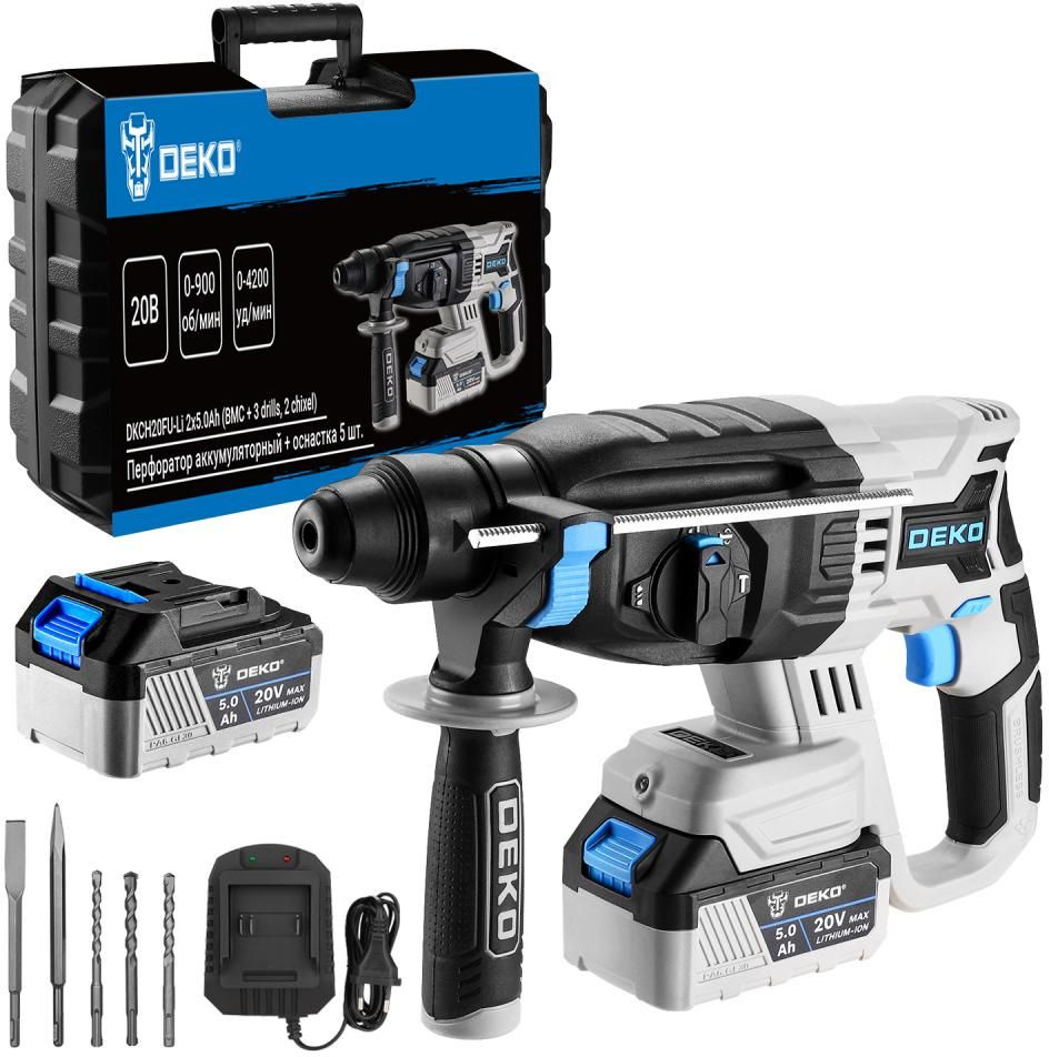 Перфоратор, глубиномер, 2 шт. АКБ, зарядное устройство, 2 шт. долото, 3 шт. сверло, руководство по эксплуатации, кейс.