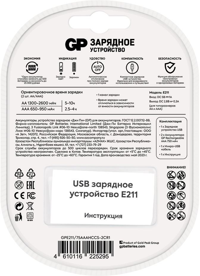 Зарядное устройство GP Rechargeable E211/75AAAHCCS-2CR1
