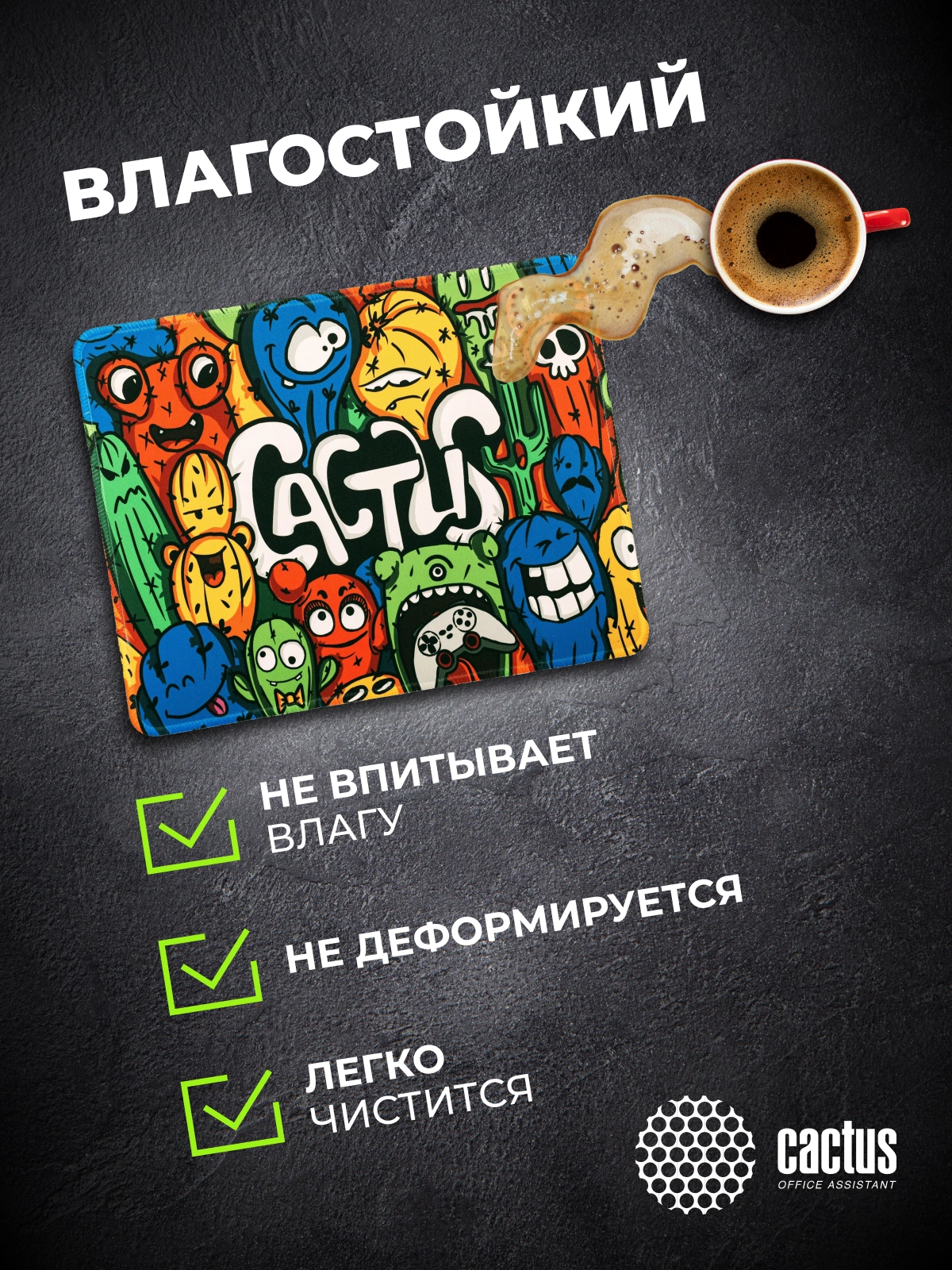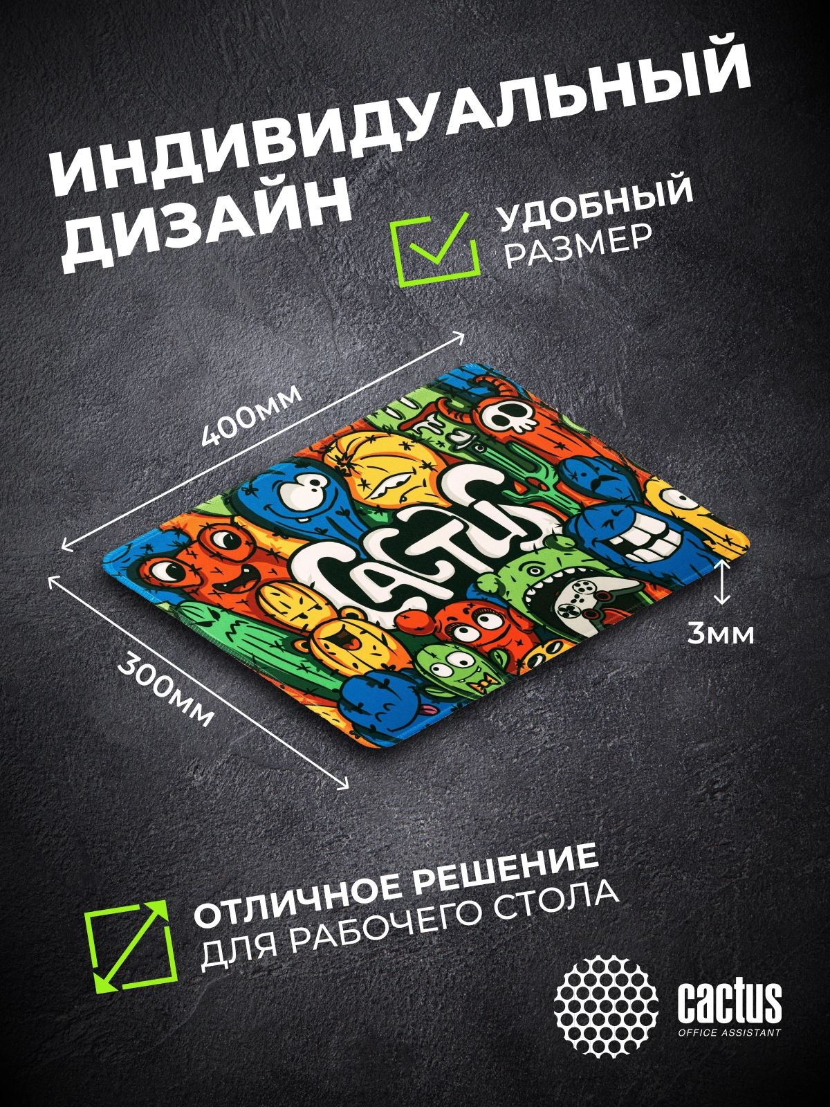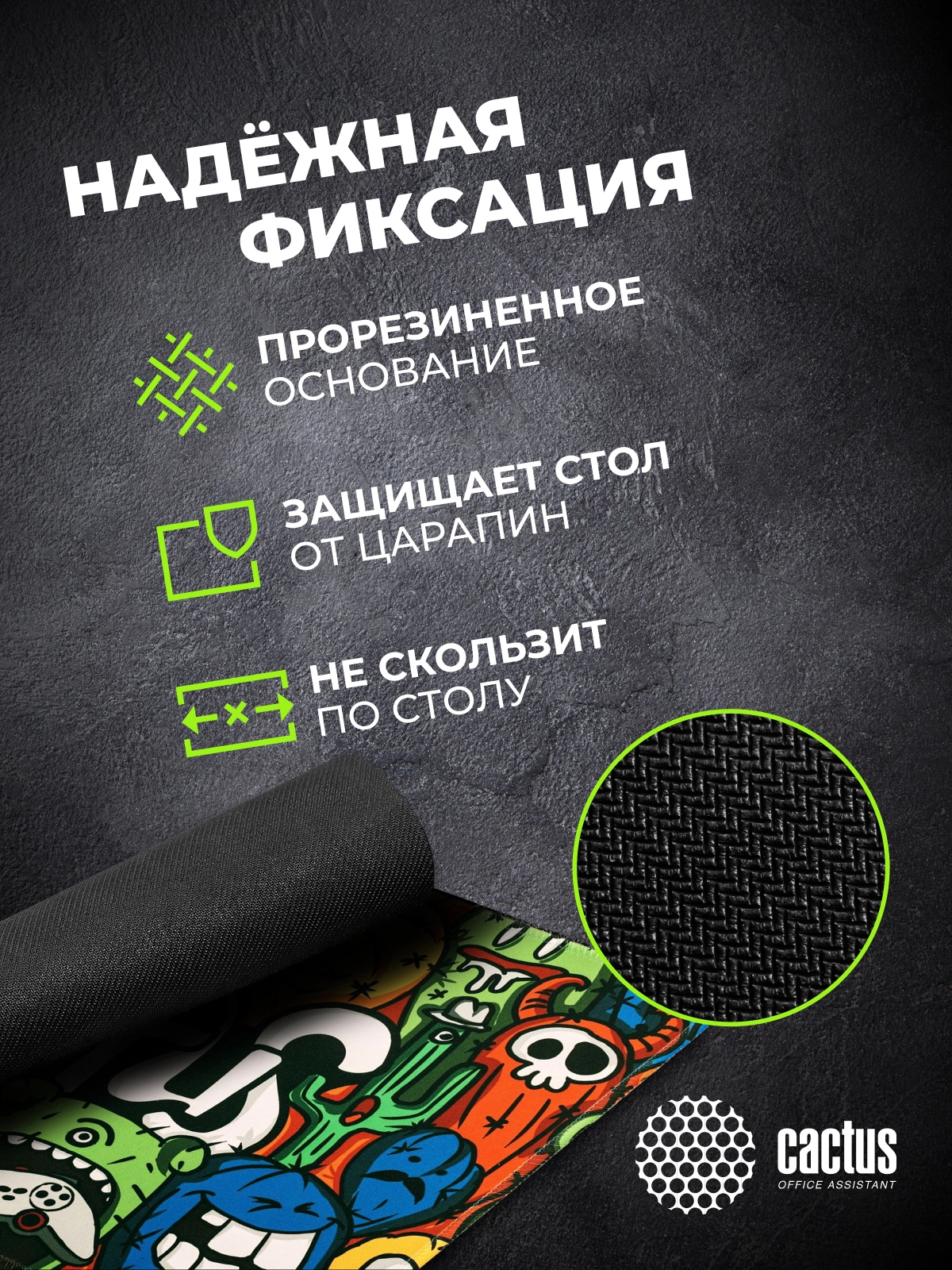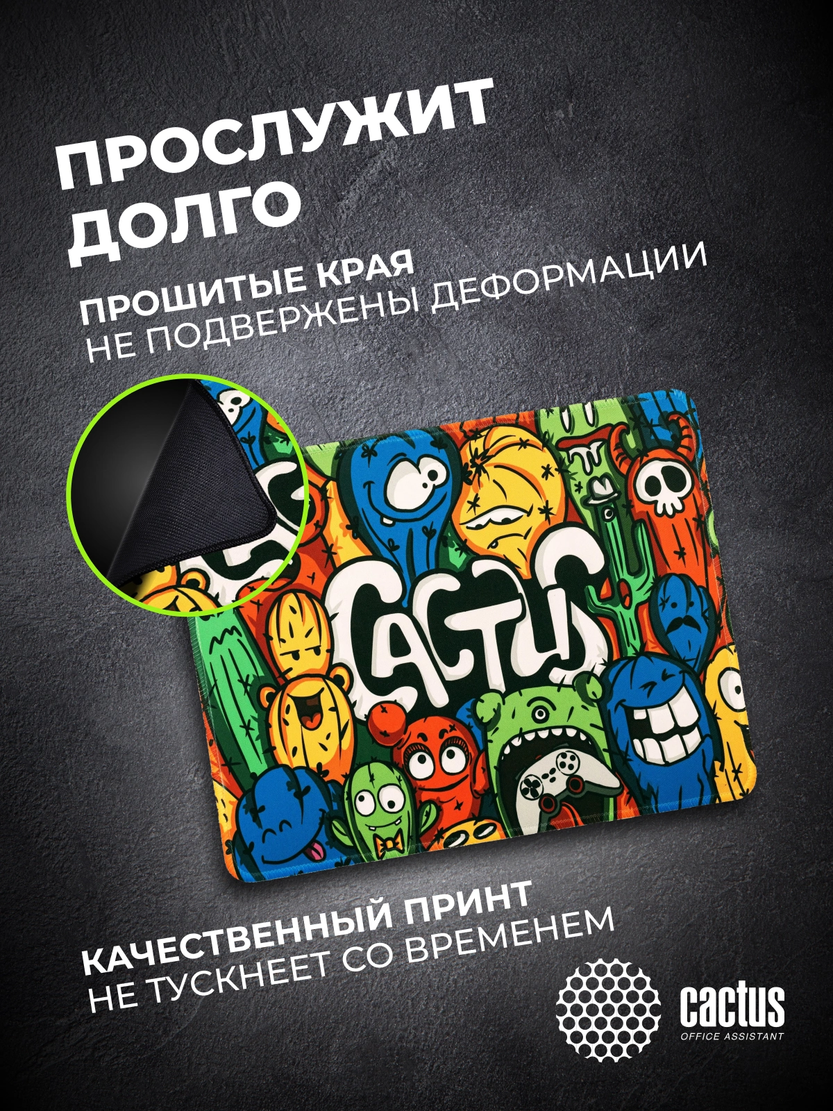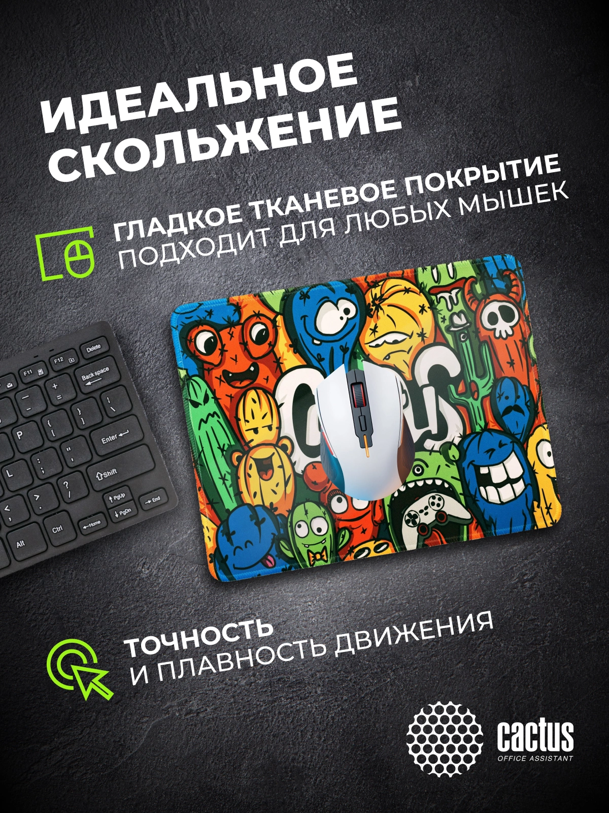 Коврик для мыши Cactus идеально подойдёт фанатам логических головоломок, квестов и стратегий. Он также будет полезен и пользователям офисных программ и графических редакторов, помогая более полно взаимодействовать с компьютерной мышью и точно позиционировать курсор.
