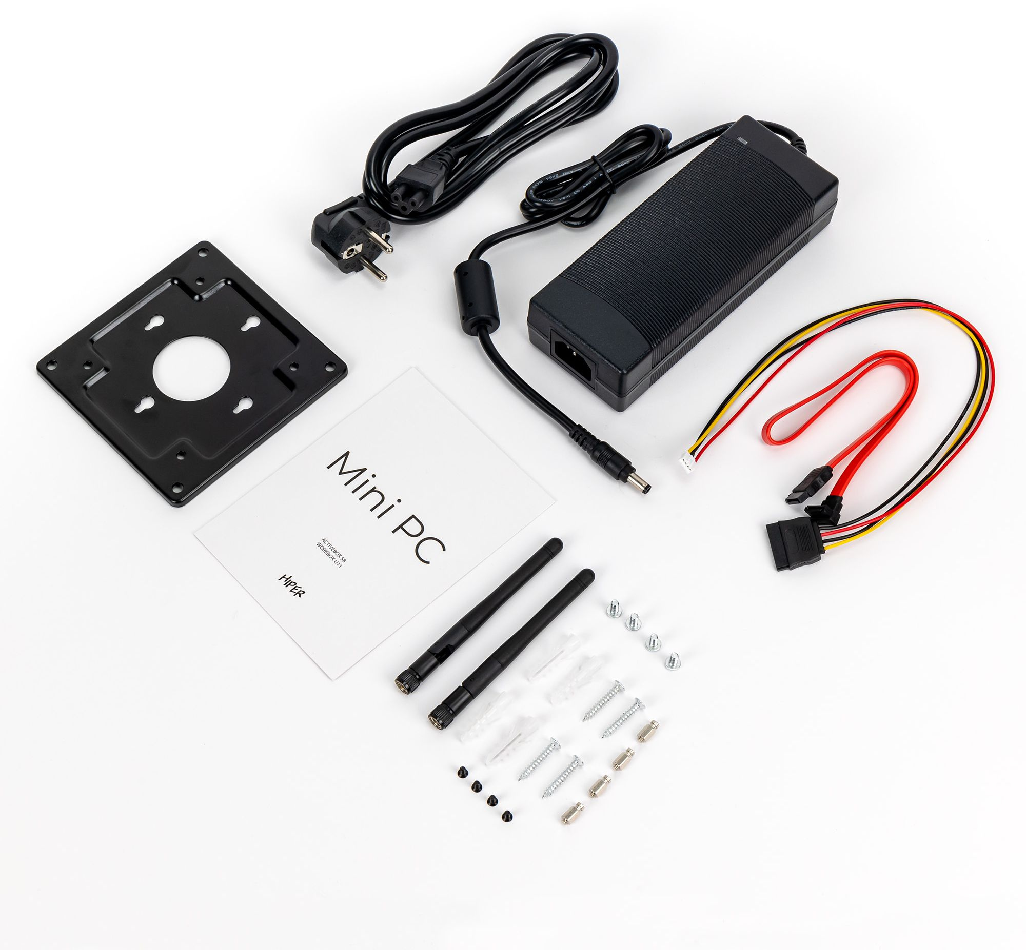 Мини пк/блок питания/мануал/VESA крепление/кабель питания и кабель управления для возможности установить дополнительного накопителя SATA2.5