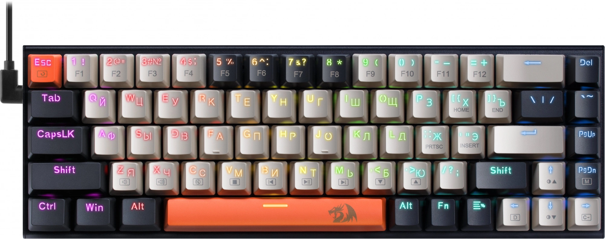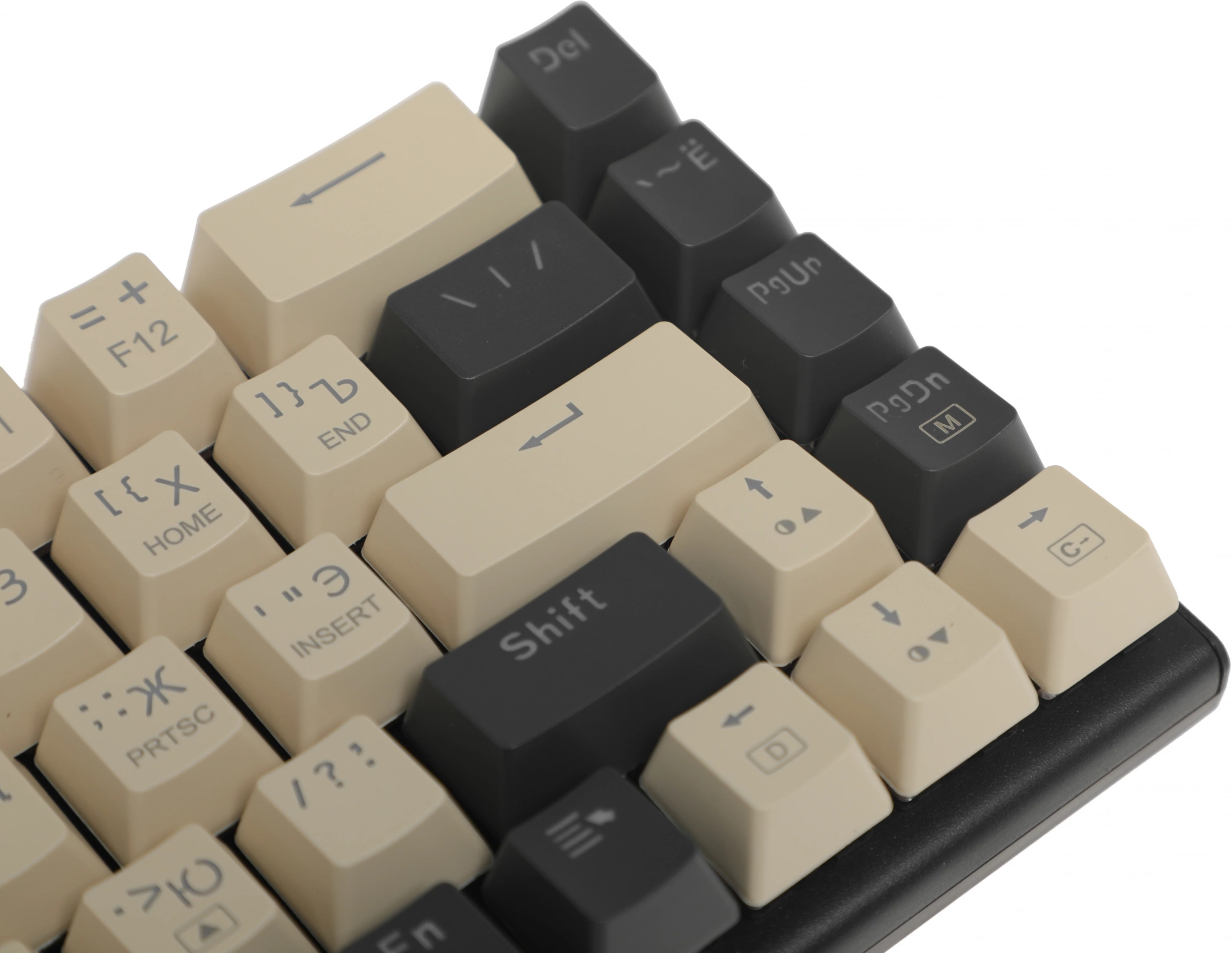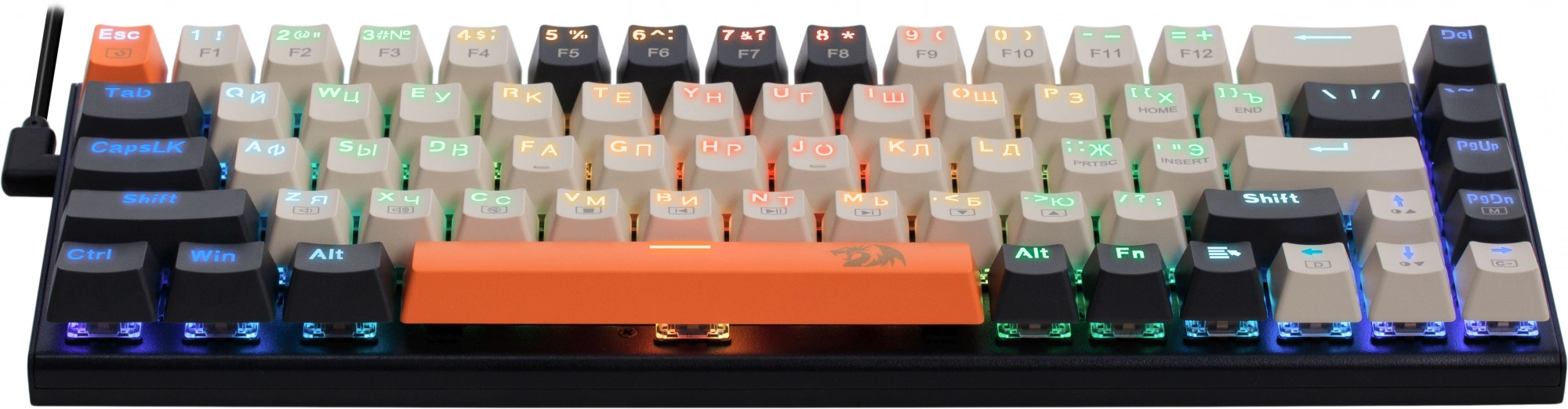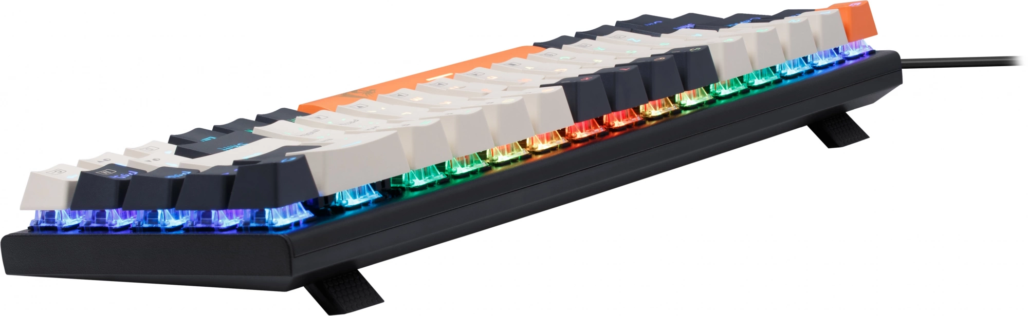 RGB подсветка. Высокопрочный долговечный кабель. Механические переключатели OUTEMU Red. Технология Double injection. Тихий ход клавиш обеспечивает практически бесшумную работу. Дышащая подсветка. Технология Hot Swap. Дополнительный набор кейкапов для кастомизации.