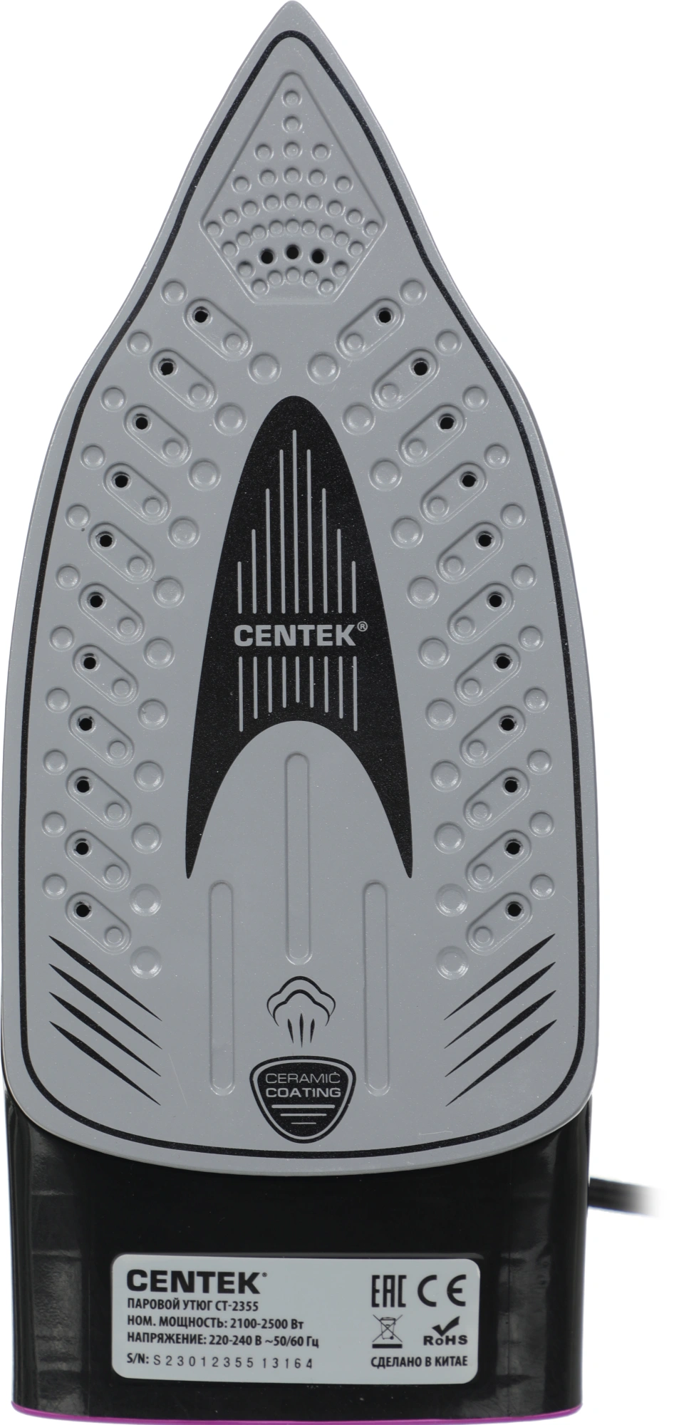 Утюг Centek CT-2355 обеспечивает простое и эффективное глажение: большое количество пара разглаживает жесткие складки, подошва с керамическим покрытием обеспечивает превосходное скольжение на любых тканях, а функция очистки от накипи повышает надежность прибора.