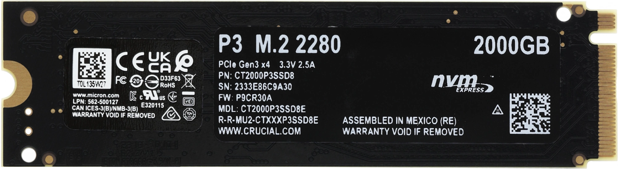 Накопитель SSD Crucial PCIe 3.0 x4 2TB CT2000P3SSD8