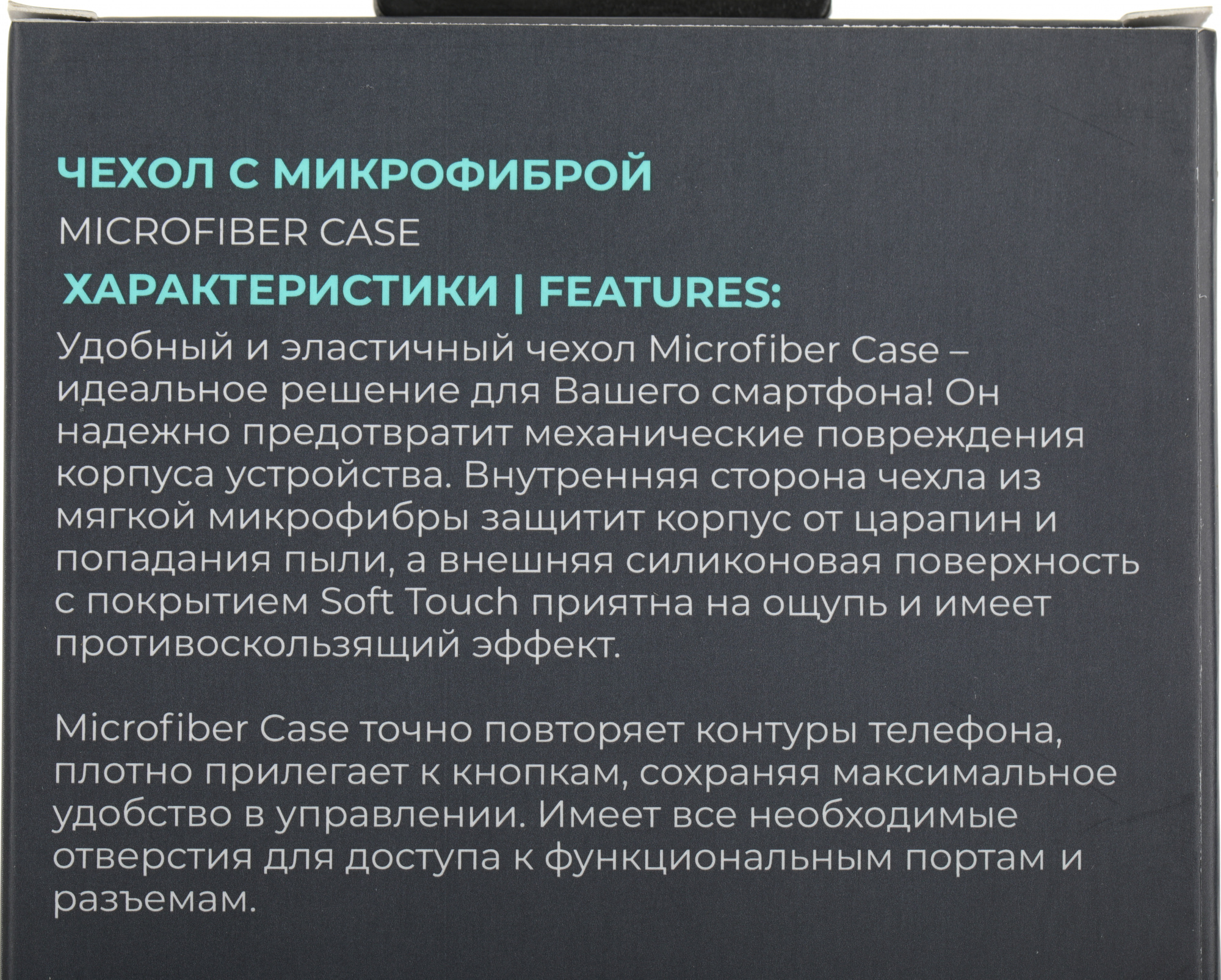 Удобный и эластичный чехол Microfiber Case – идеальное решение для Вашего смартфона. Внутренняя сторона чехла из мягкой микрофибры защитит корпус от царапин и попадания пыли, а внешняя силиконовая поверхность с покрытием Soft Touch приятна на ощупь и имеет противоскользящий эффект.