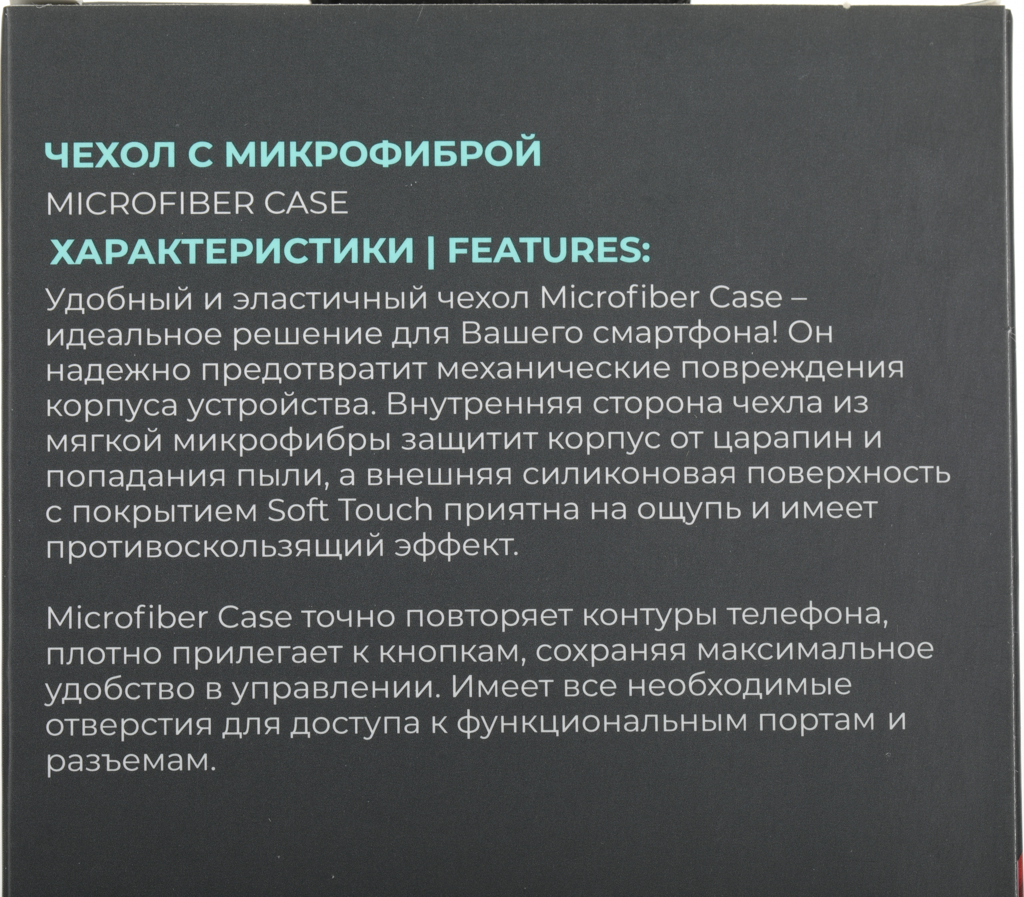 Удобный и эластичный чехол Microfiber Case – идеальное решение для Вашего смартфона. Внутренняя сторона чехла из мягкой микрофибры защитит корпус от царапин и попадания пыли, а внешняя силиконовая поверхность с покрытием Soft Touch приятна на ощупь и имеет противоскользящий эффект.