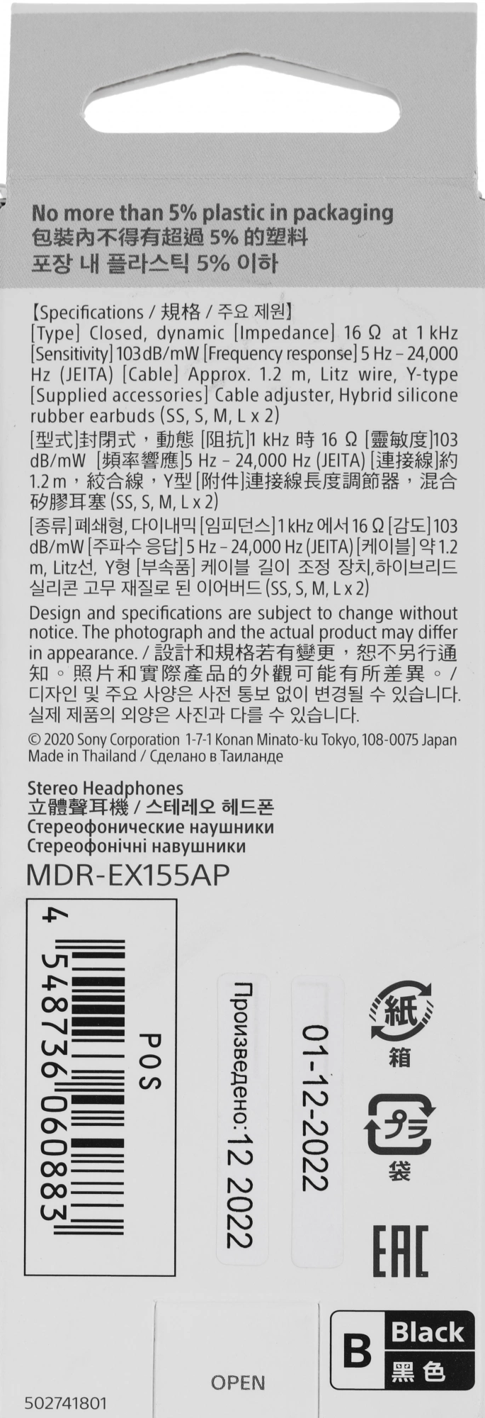 1.2м черный проводные в ушной раковине (MDR-EX155A...