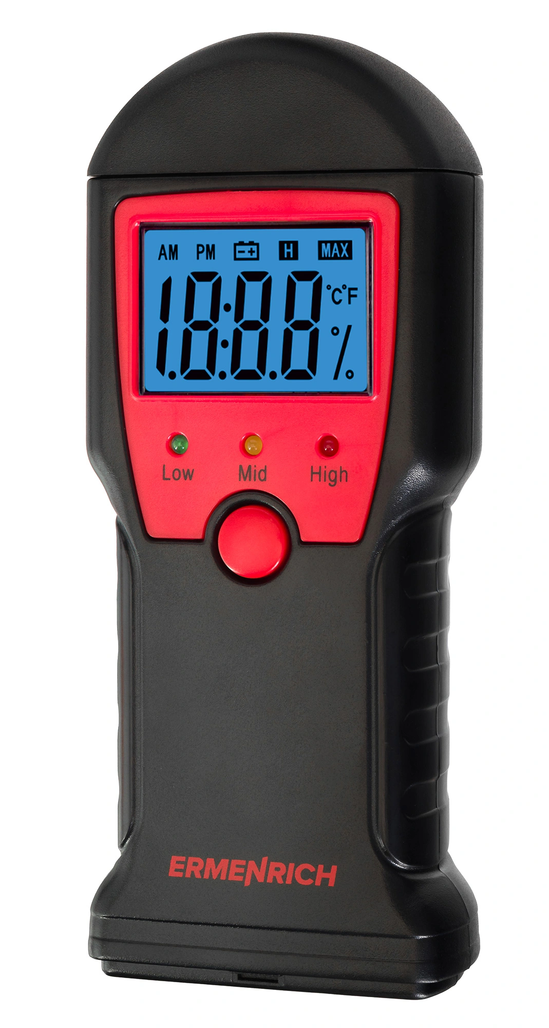 Датчик влажности (влагомер) Ermenrich Wett MW10 – портативный измерительный инструмент, который определяет уровень влажности разных материалов: в первую очередь сделанных из древесины, но также и предназначенных для строительных работ (растворов, смесей и проч.).