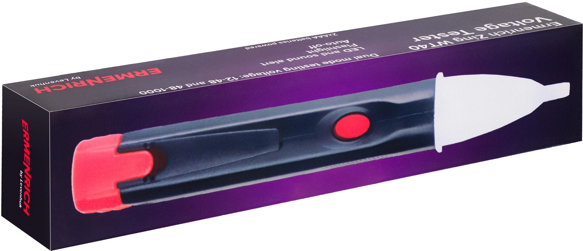 Особенностью этой модели является возможность проводить измерения в двух диапазонах: 12–48 В и 48–1000 В, а также давать разные светозвуковые сигналы в зависимости от результата измерений. Тон зуммера различается по частоте, а индикатор будет сигнализировать или миганием, или непрерывным светом.