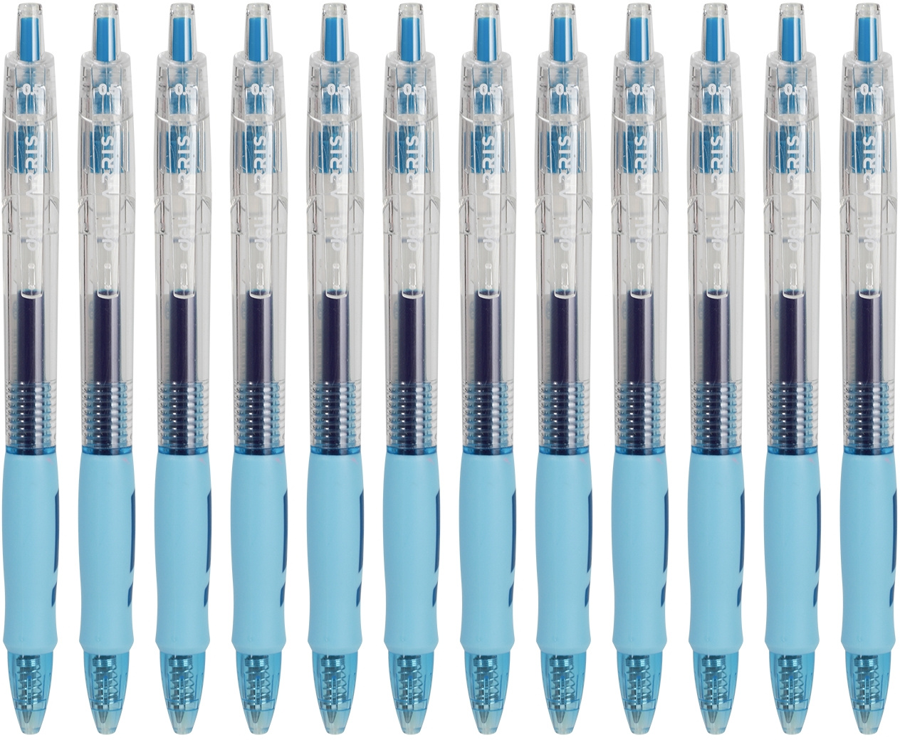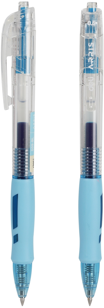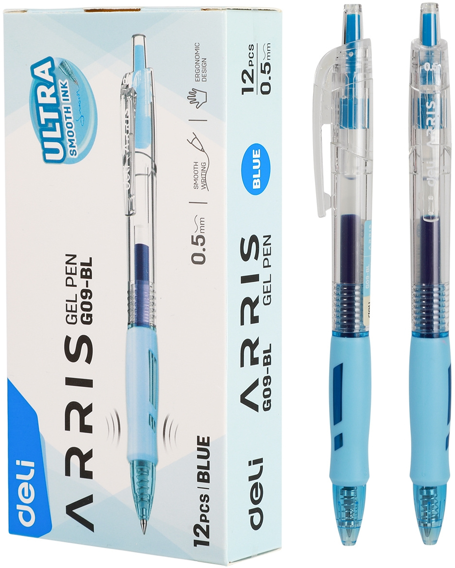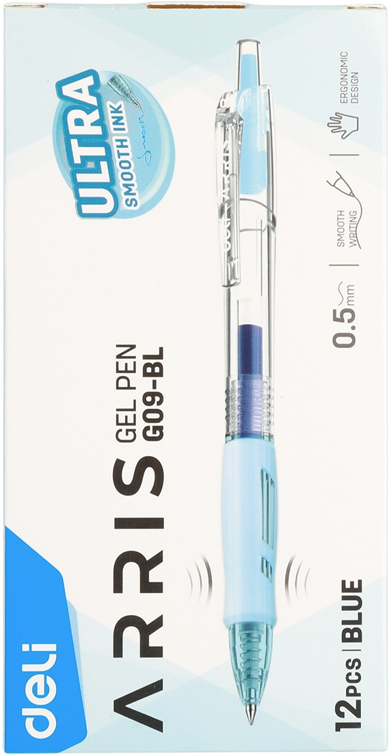 Набор ручек гелев. автоматическая Deli Arris (EG09-BL-P) прозрачный/голубой син. черн. кор.карт. (12шт) линия 0.7мм резин. манжета
