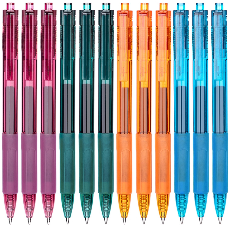 Набор ручек гелев. автоматическая Deli Nusign (NS561-P) ассорти черн. черн. кор.карт. (12шт) линия 0.5мм резин. манжета