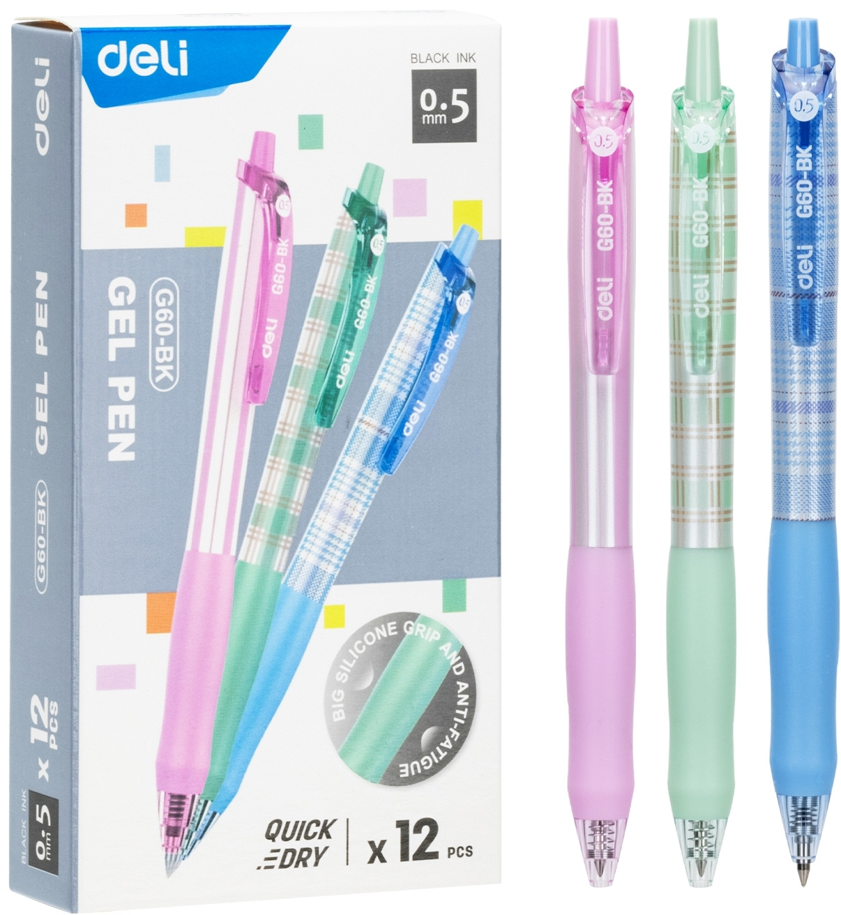 Набор ручек гелев. автоматическая Deli (EG60-BK-P) ассорти черн. черн. кор.карт. (12шт) линия 0.5мм резин. манжета