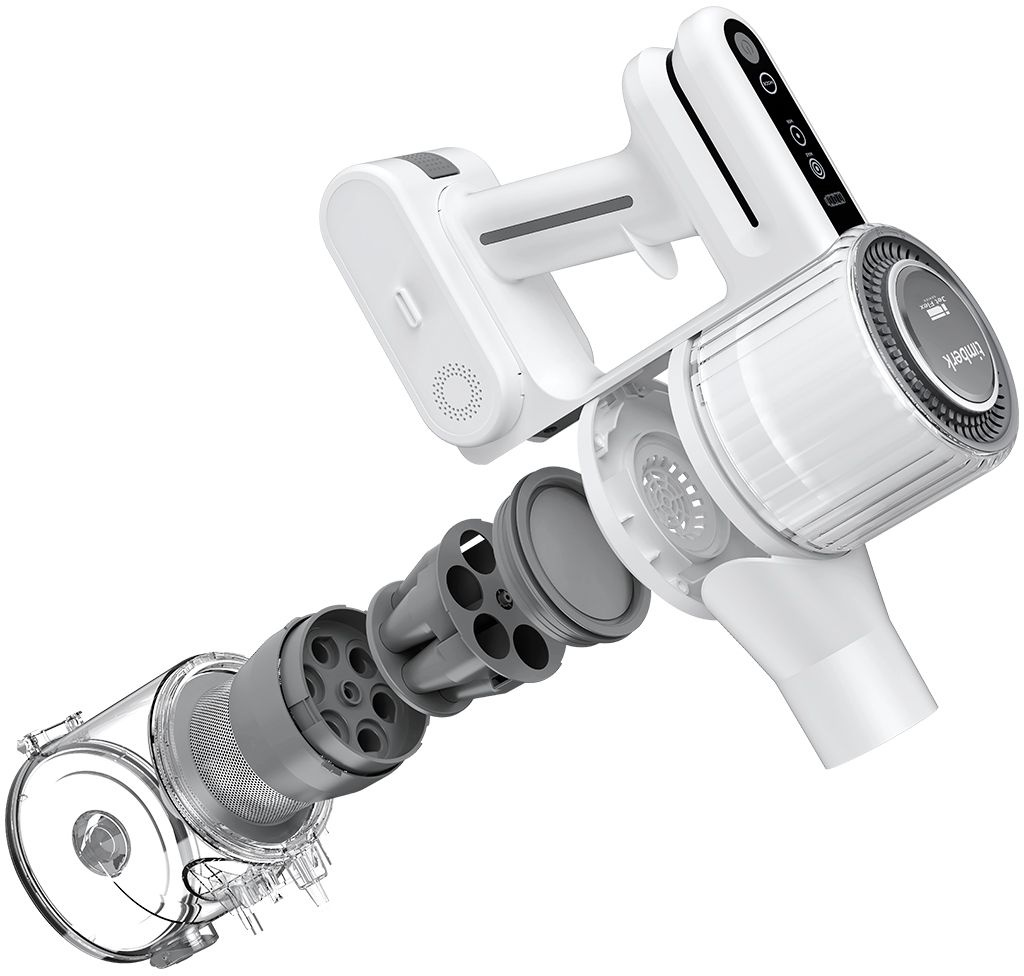 легко очищаемый пылесборник, место для хранения насадок, настенное крепление, подсветка зоны уборки