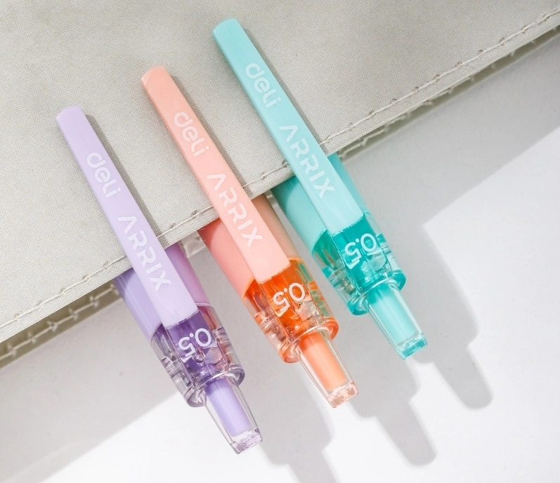 Набор ручек гелев. автоматическая Deli Arris (EG09-BK-P) прозрачный/серый d=0.5мм черн. черн. кор.карт. (12шт) резин. манжета