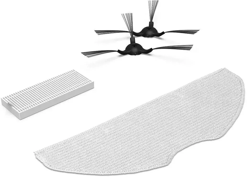 2 боковые щетки, HEPA-фильтр, микрофибра для влажной уборки